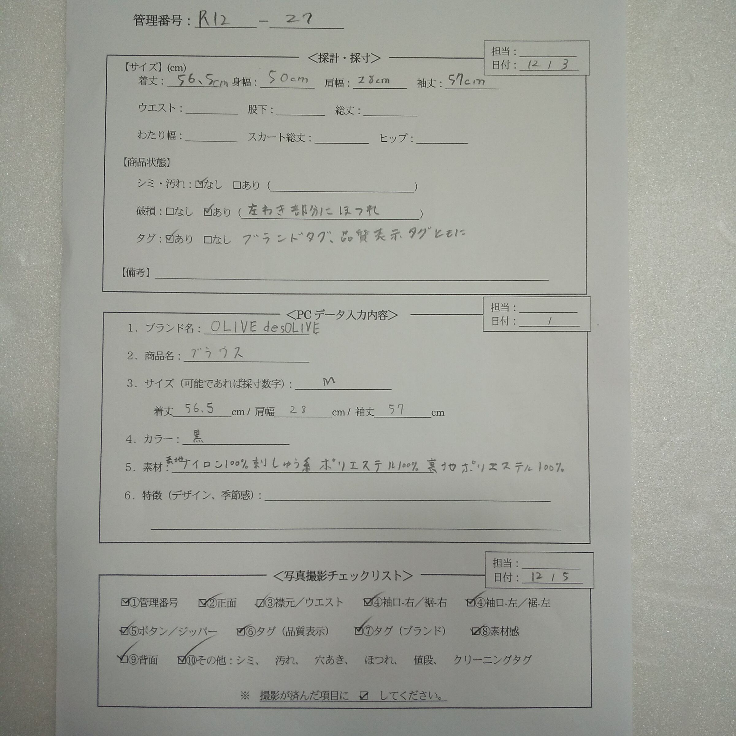 管理番号:R-12-27 #てまいらずアパレル商品一覧