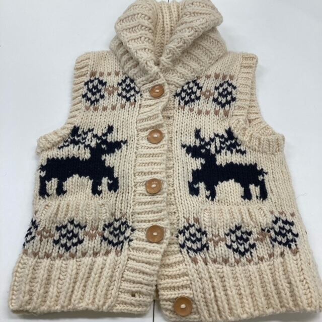 シカ柄 ノルディック ニットベスト ウール100% ペルー製アイボリーレディース