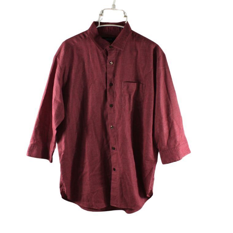 COMME CA ISM 七分袖 シャツ メンズ M ボルドー 無地 コムサイズム カジュアル 春夏