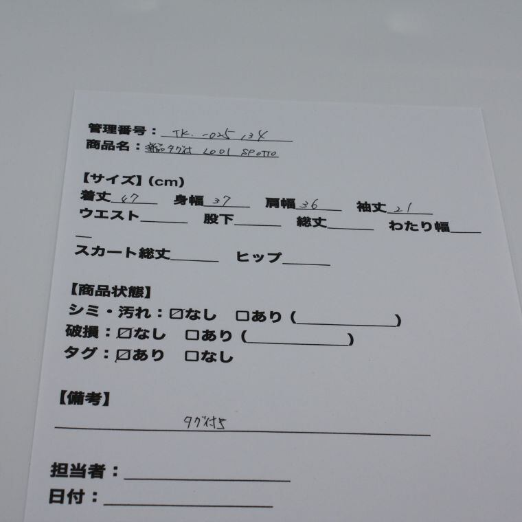 管理番号:TK-025134 #てまいらずアパレル商品一覧