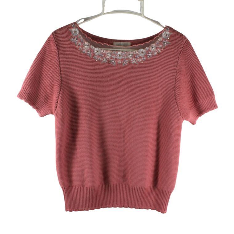 LODISPOTTO ロディスポット 半袖ニット 刺繍レース ピンク M 新品タグ付き フェミニン 上品