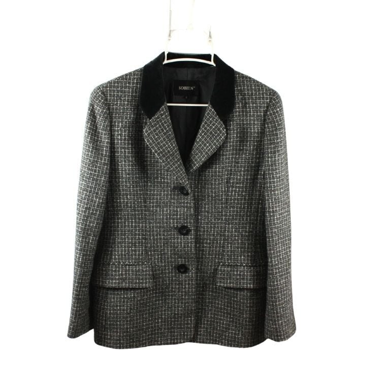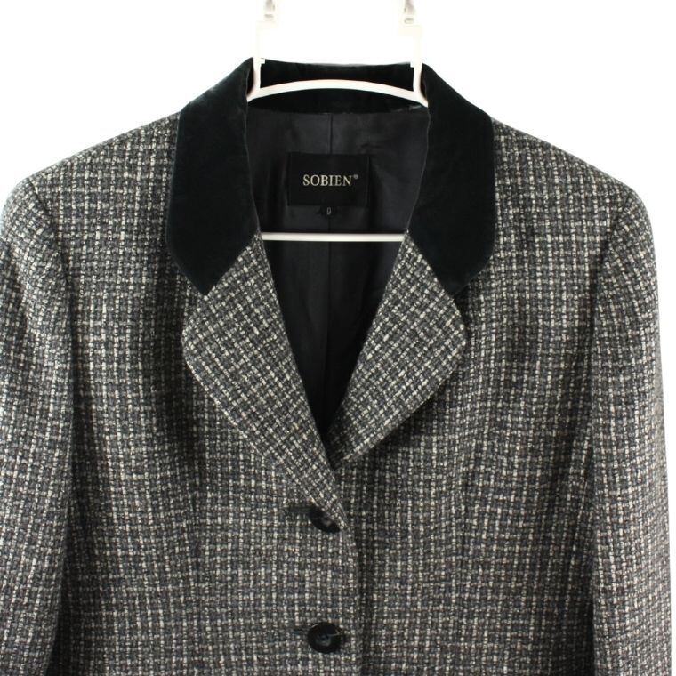 SOBIEN ウール100% ツイードジャケット テーラード ブラック系 M相当