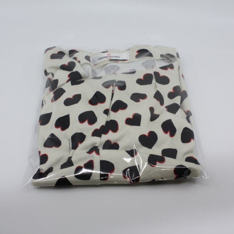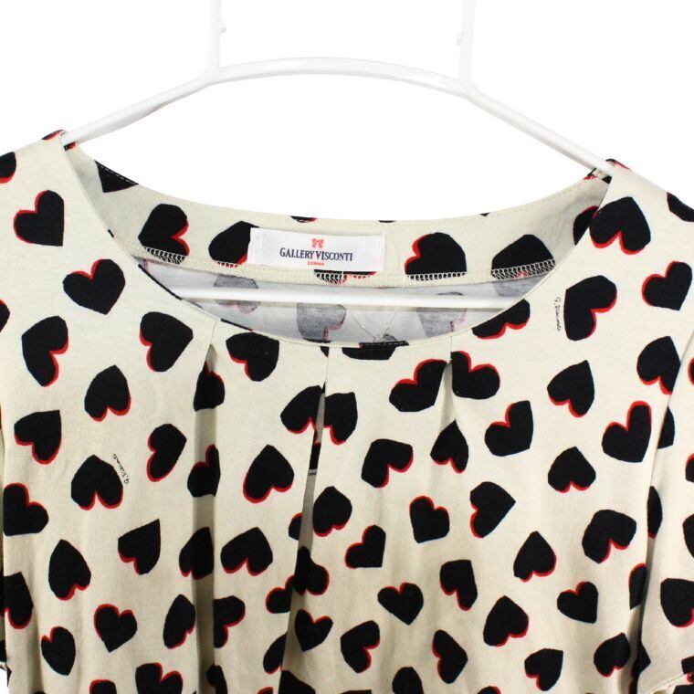 GALLERY VISCONTI DONNA ハート柄 半袖トップス 総柄 アイボリー レディース