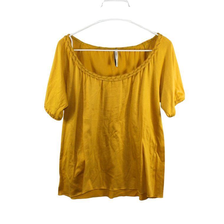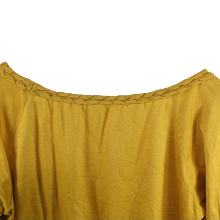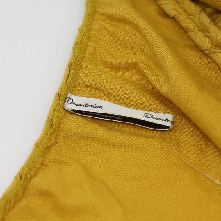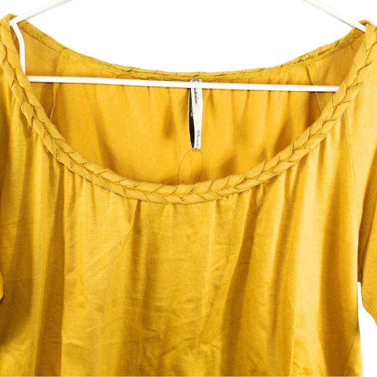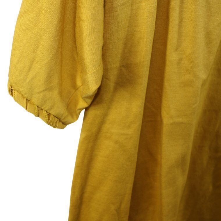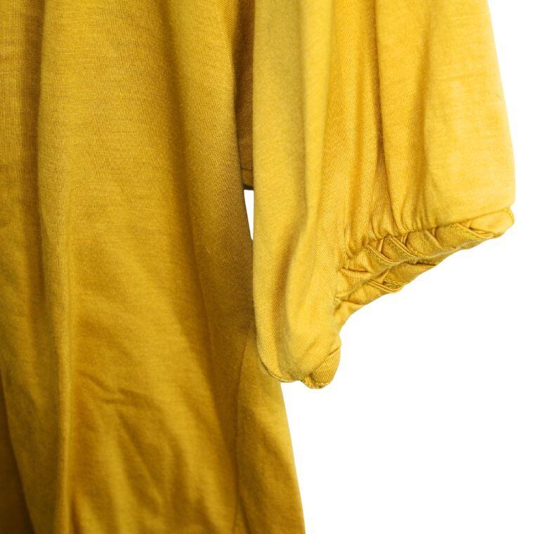Dress terrier カットソー 日本製 マスタード 半袖 編み込みネック レディース