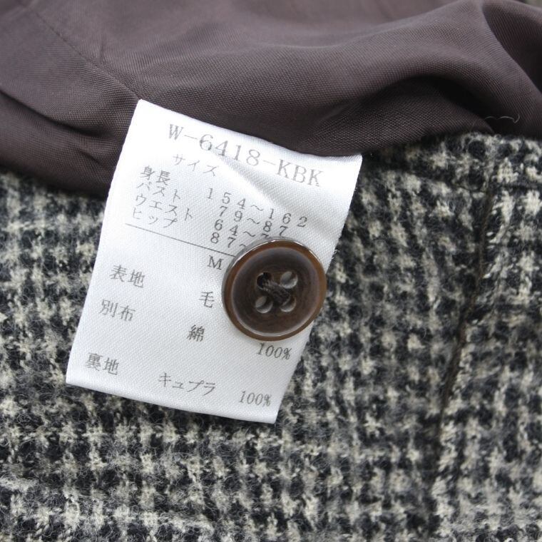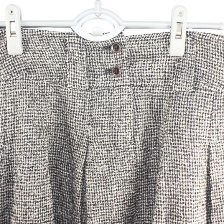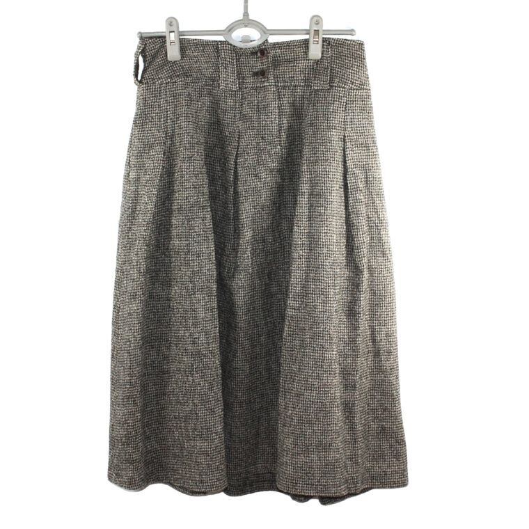 日本製 ツイード フレアスカート レディース M相当 グレー系 ウール混 ミモレ丈 上品