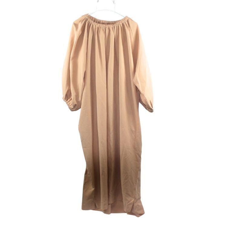 ギャザーネック ワンピース ロング丈 ベージュ 長袖 シンプル 上品 レディース