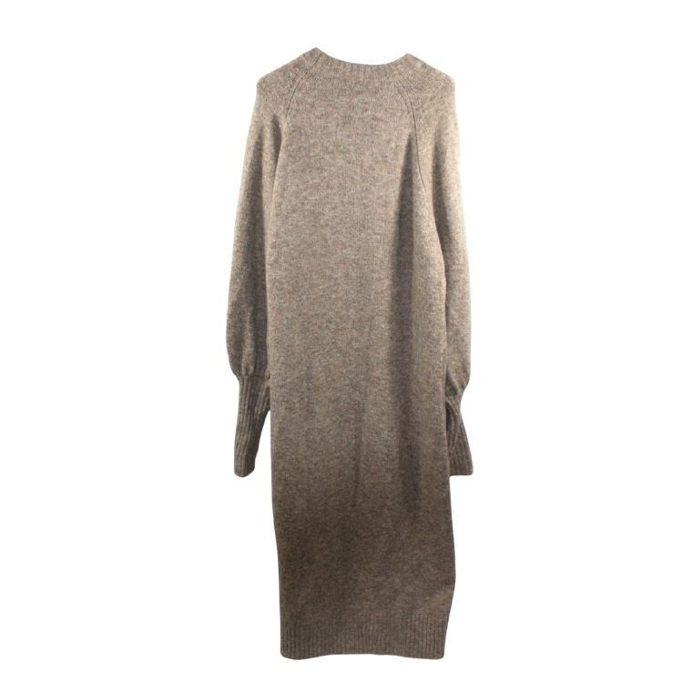 ロング ニットワンピース グレージュ M相当 クルーネック 長袖 体型カバー 秋冬