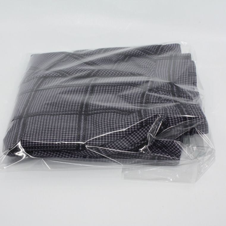 落ち着いたグレー系カラーに、上品なチェックデザインが特徴の一着です。
