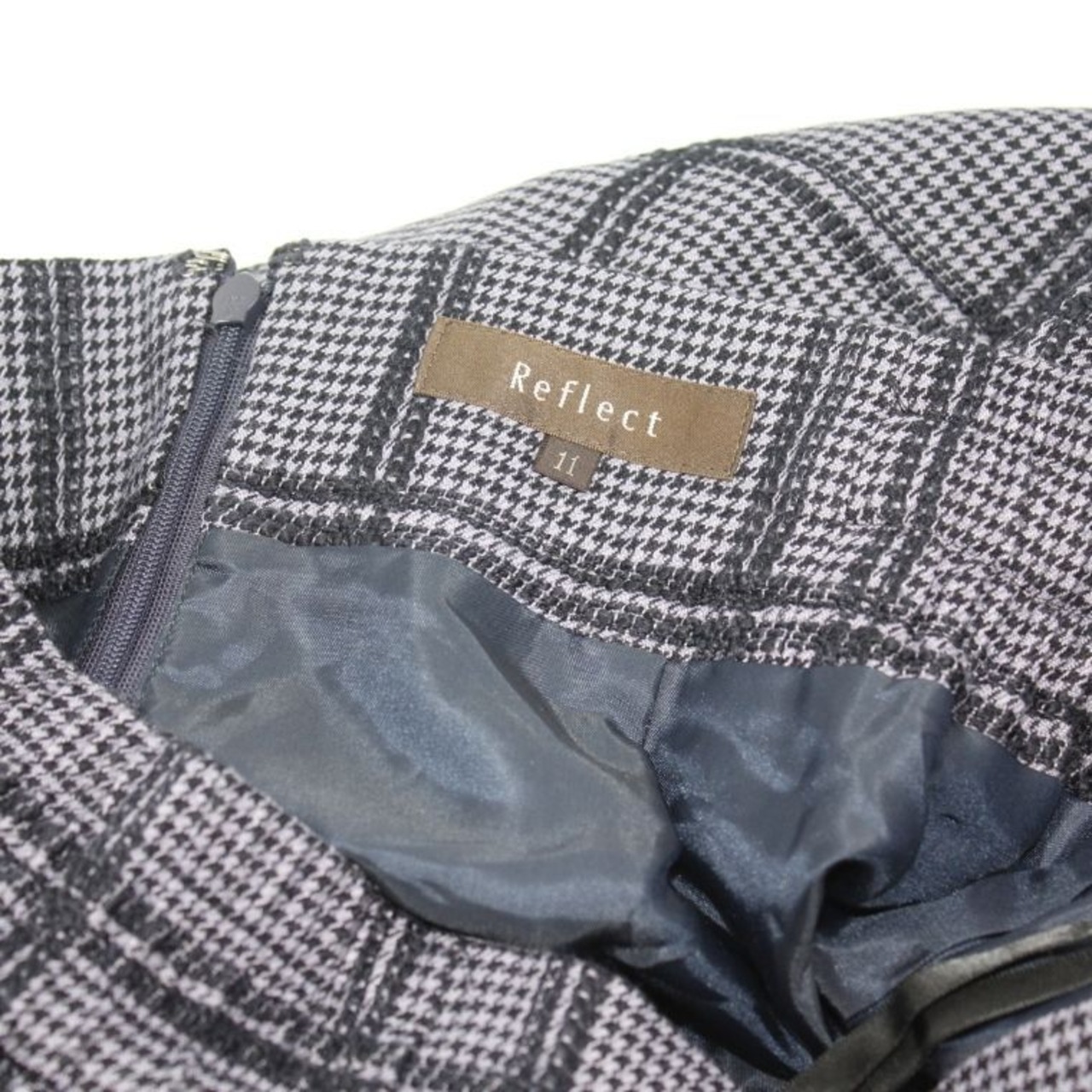 Reflect チェック柄 フレアスカート グレー系 裏地付き レディース 上品 秋冬