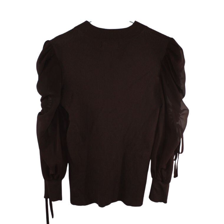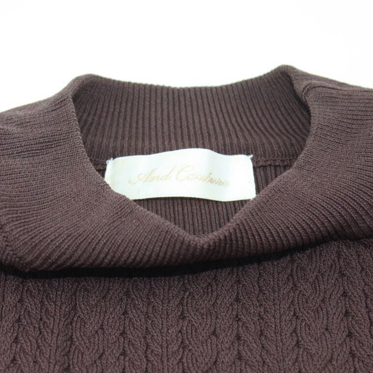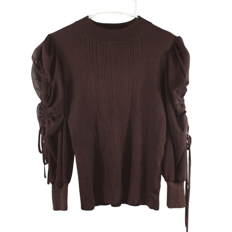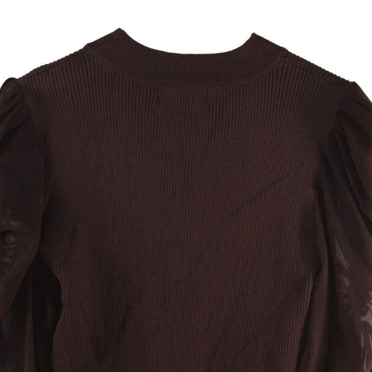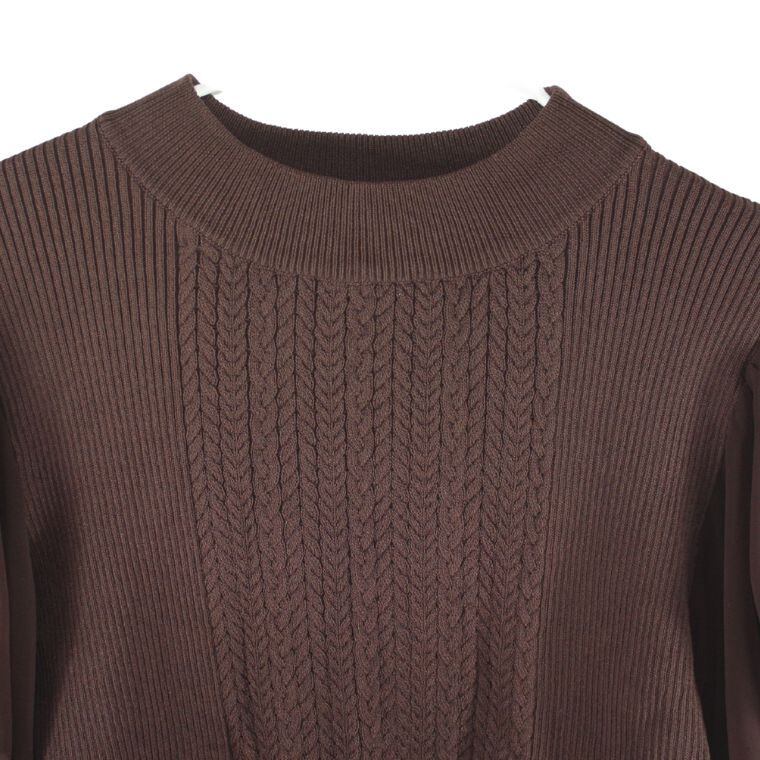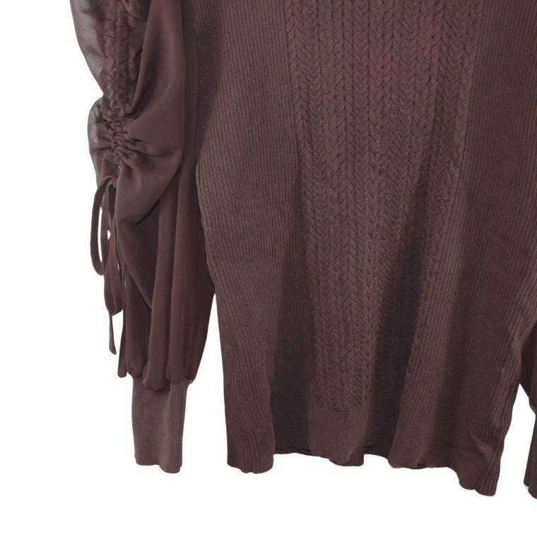 シースルースリーブ ニットトップス ブラウン ケーブル編み ストレッチ レディース