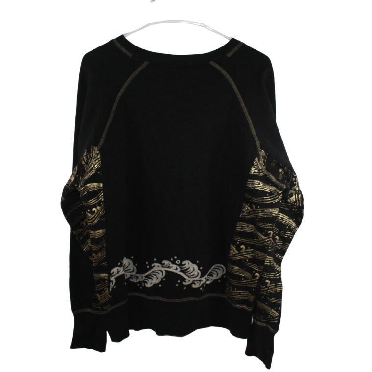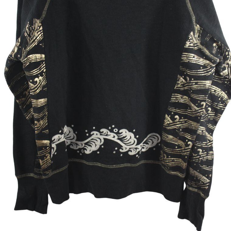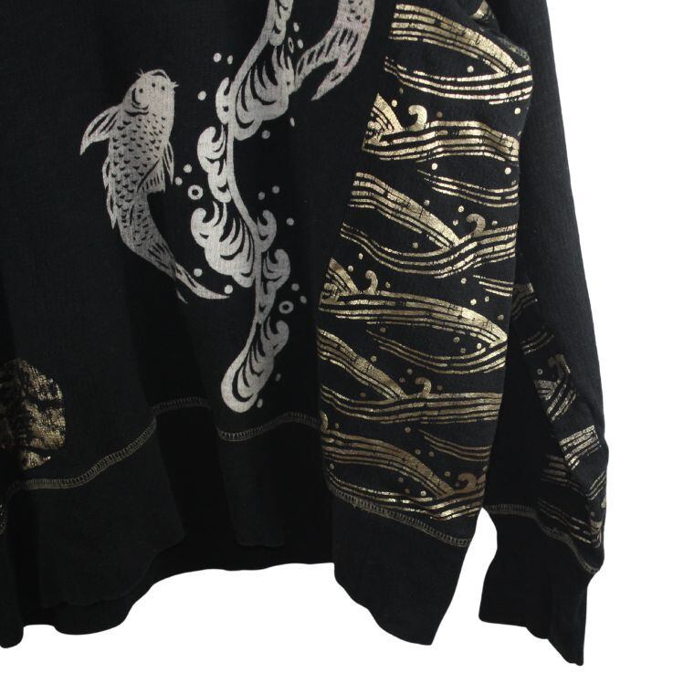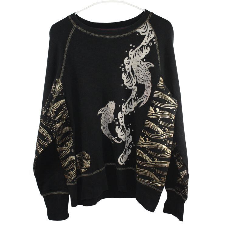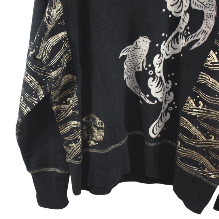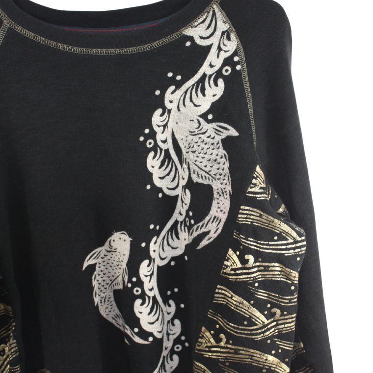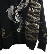 和柄 鯉プリント スウェット トレーナー ブラック Mサイズ 綿100% 長袖 レディース