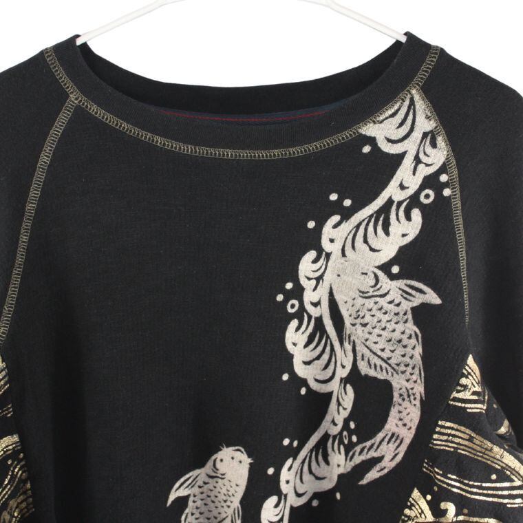 フロントに鯉モチーフの和柄プリントが施されたスウェットトレーナーです。