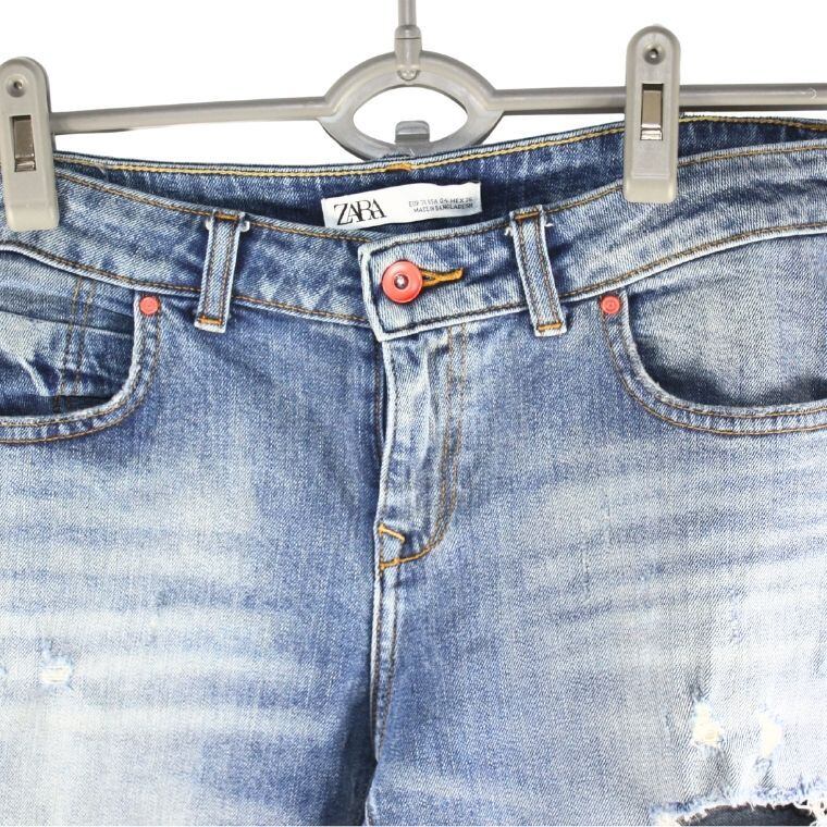 ZARA ダメージ加工 デニムパンツ ジーンズ インディゴ ユーズド加工 細身シルエット