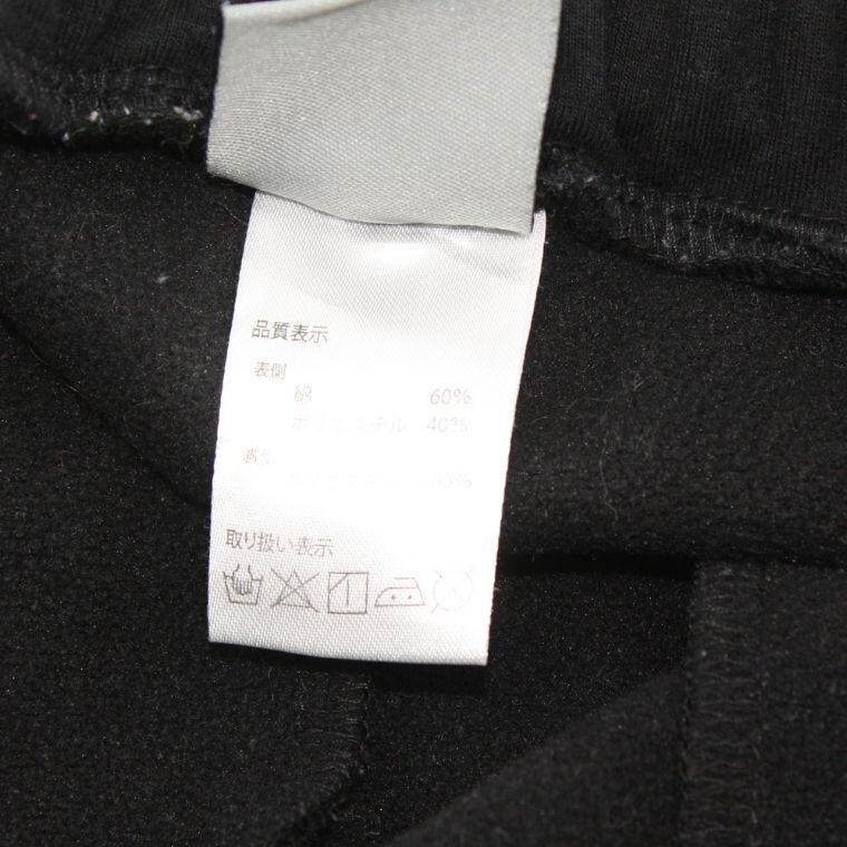 素材はスウェット生地で、内側は起毛仕様となっており、肌触りが良く保温性もあります。秋冬シーズンを中心に活躍しやすく、日常的に使いやすい素材構成です。洗濯表示も付いており、普段使いしやすい点もポイントです。