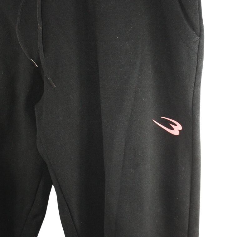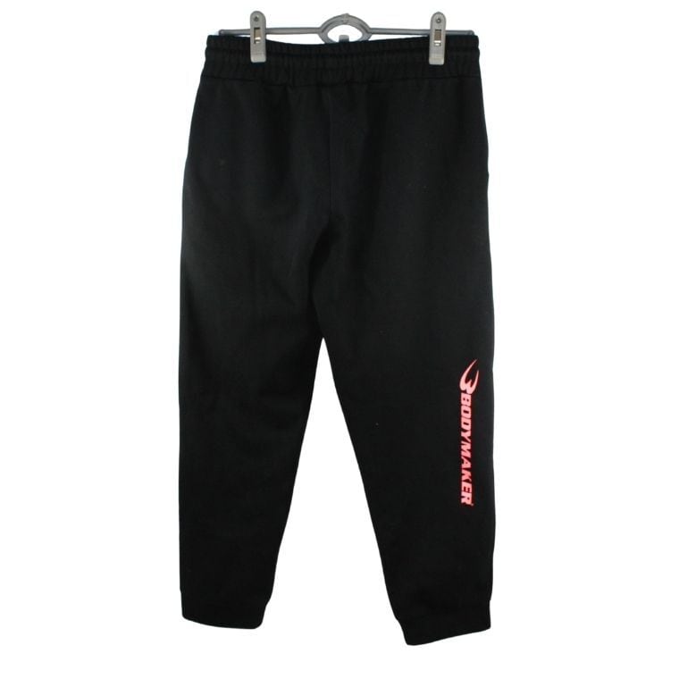 BODYMAKER(ボディメーカー)のロゴ入りスウェットパンツです。トレーニングウェアやスポーツアパレルで知られるBODYMAKERらしい、シンプルかつ実用性を重視したデザインが特徴の一本です。ブラックを基調としたボディに、脚部分にはブランドロゴがプリントされており、スポーティーな印象を与えます。