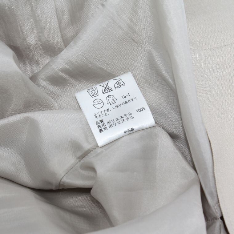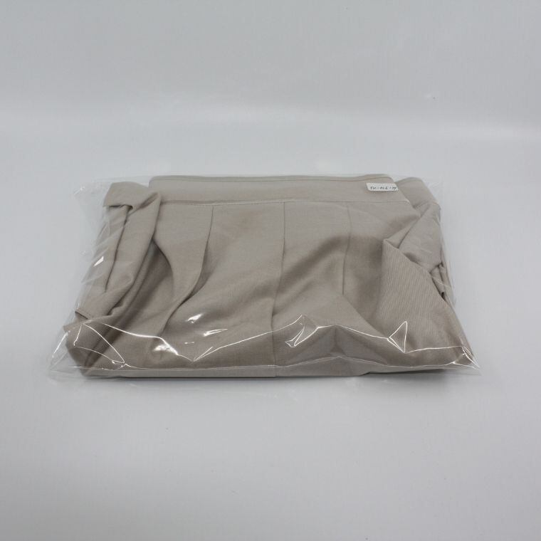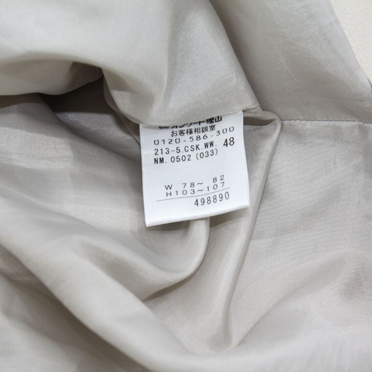 表記サイズは48で、ウエスト・ヒップともにゆとりのあるサイズ感です。実寸から見ても比較的ゆったりとした作りのため、リラックスした着用感が得られます。裏地付きのため、透け感を気にせず着用でき、安心感のある仕様です。