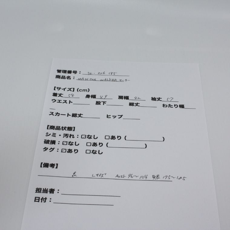 管理番号:TK-026185 #てまいらずアパレル商品一覧