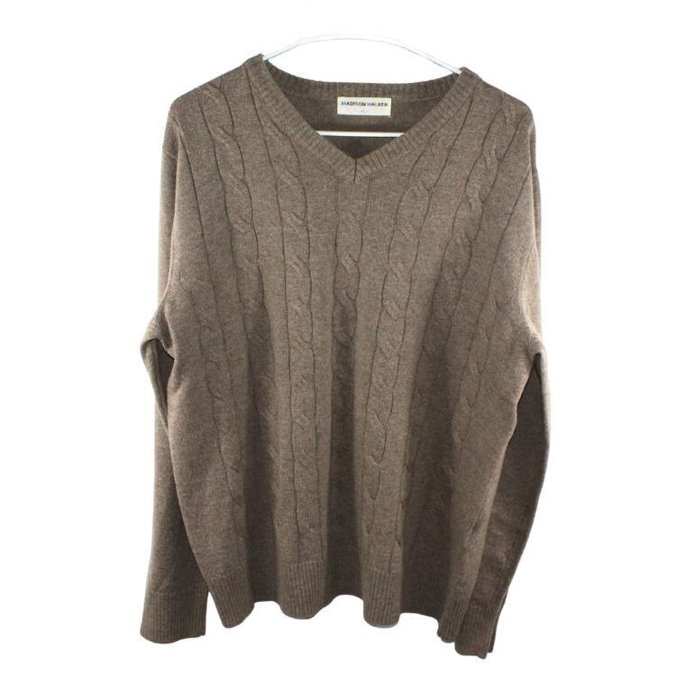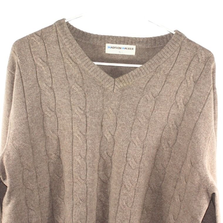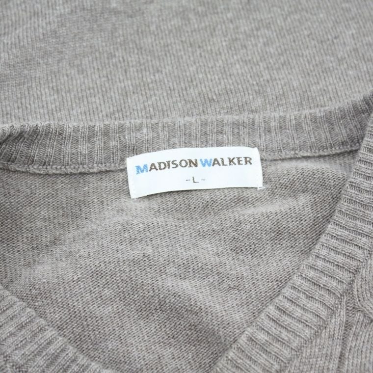 MADISON WALKER Vネック ケーブルニット Lサイズ メンズ グレー系 セーター 秋冬