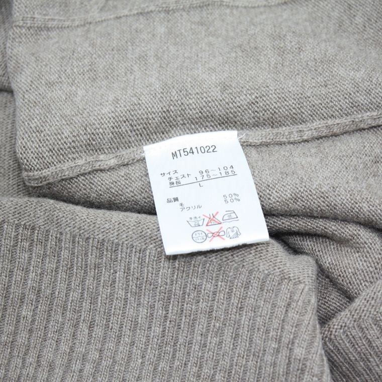 アクリルとポリエステルの混紡素材で、軽さがあり扱いやすい点も特徴です。秋冬シーズンのデイリーウェアとして取り入れやすく、通勤や普段使いにも向いています。