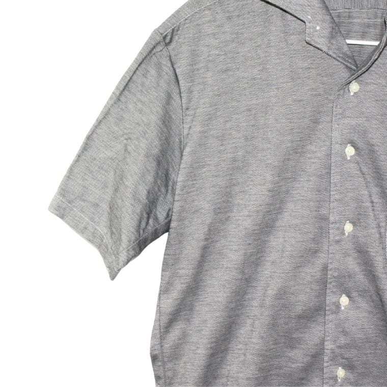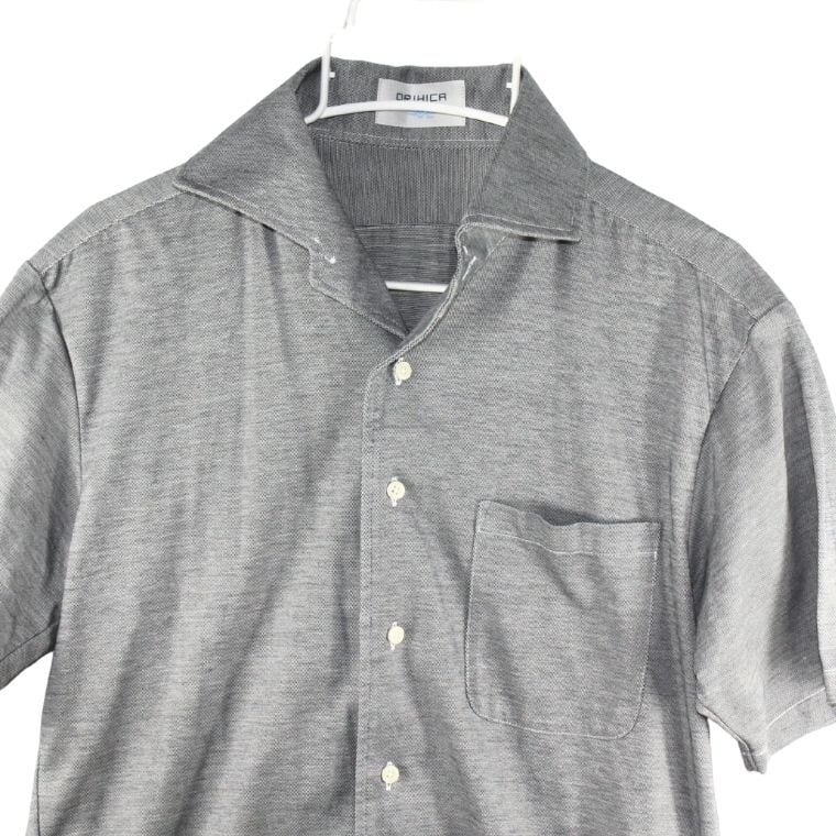 ORIHICA 半袖シャツ メンズ L グレー 鹿の子 ポロシャツ風 日本製 ビジネスカジュアル