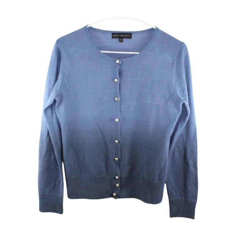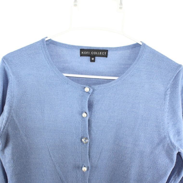 KOFI COLLECT ニットカーディガン Mサイズ ブルー アクリル100% シンプル 羽織り レディース
