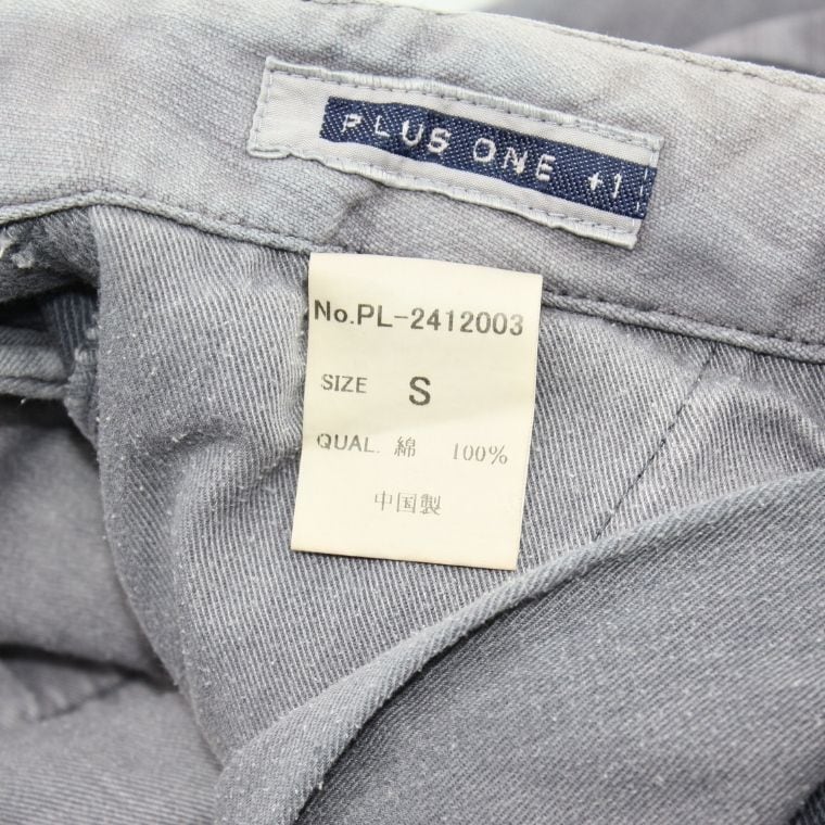PLUS ONE IN テーパードパンツ コットン100% グレー Sサイズ 日本製生地 カジュアル