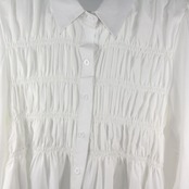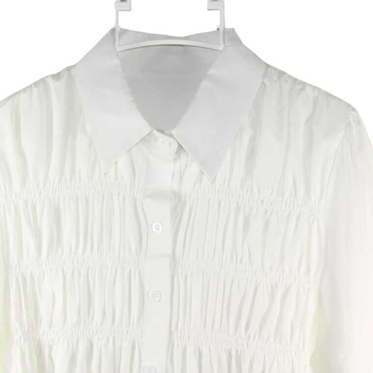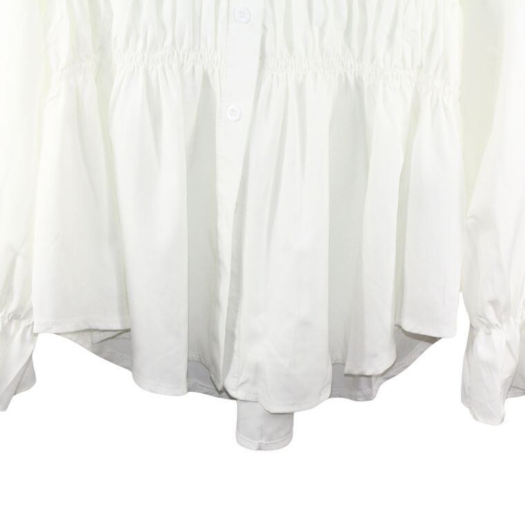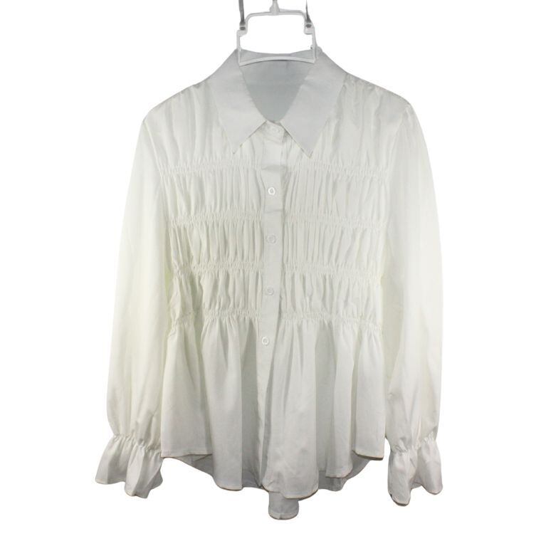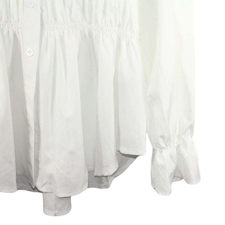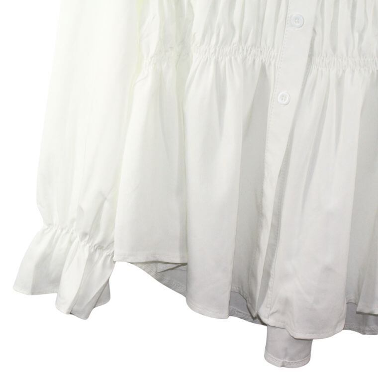 VIANTE シャーリング ブラウス 長袖 ホワイト フレア袖 透け感 上品 レディース