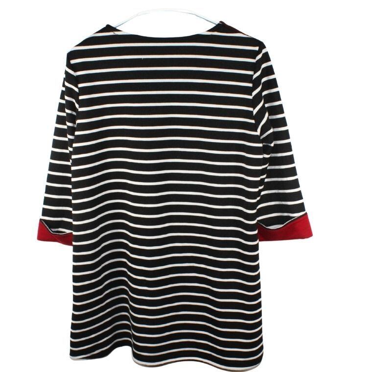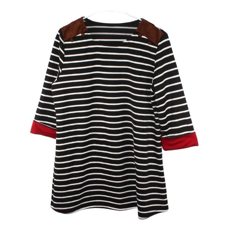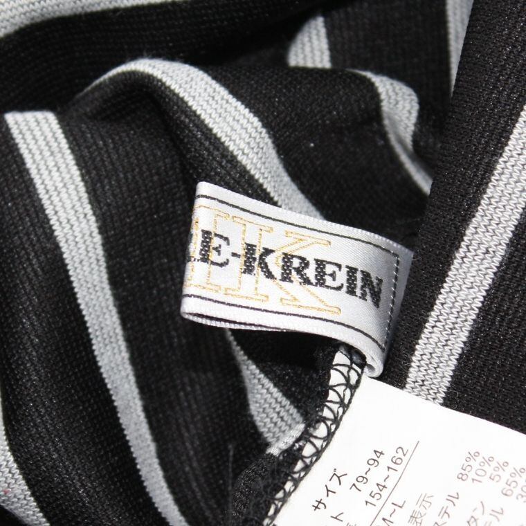 METURE KREIN ボーダーワンピース 七分袖 切替デザイン ブラック レディース M~L相当