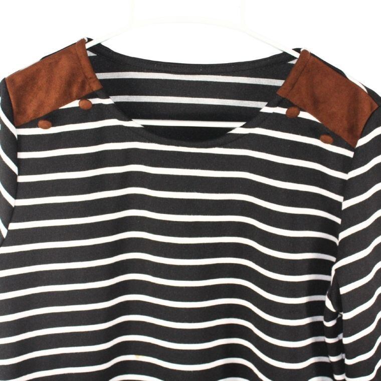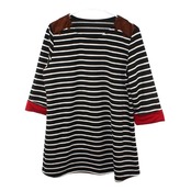 ブラック×ホワイトのボーダー柄をベースに、肩や袖口に切替デザインを施したワンピースです。
