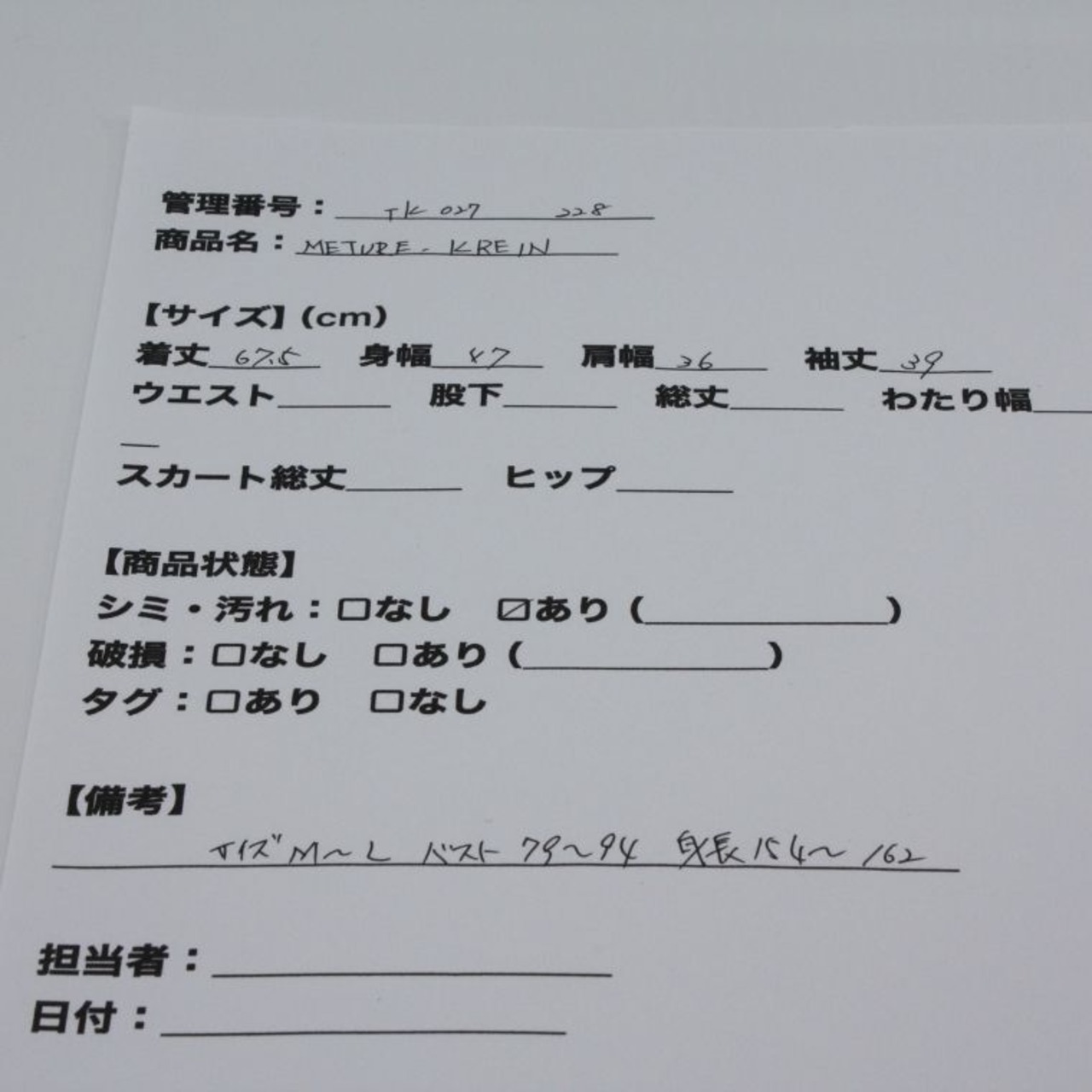 管理番号:TK-027228#てまいらずアパレル商品一覧