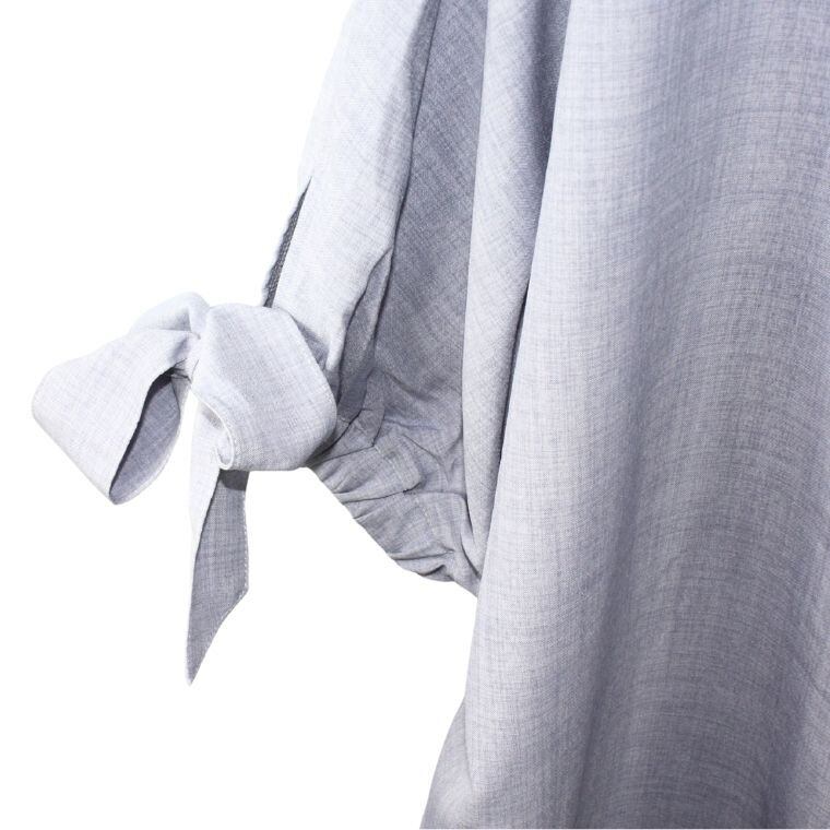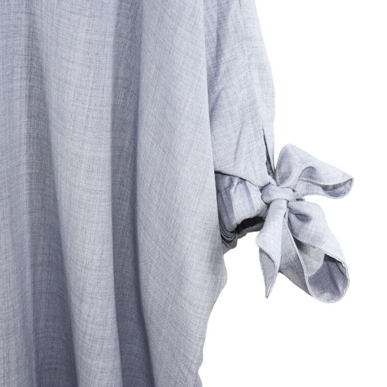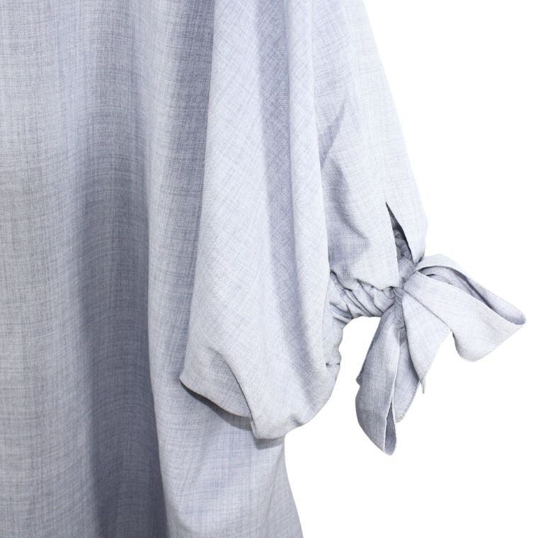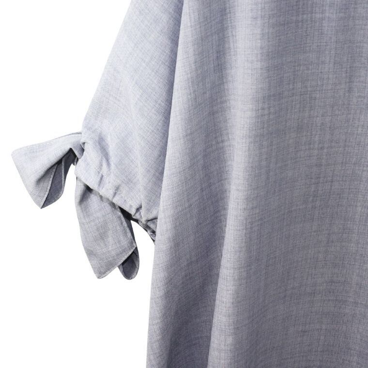 袖口にはリボンデザインが施されており、シンプルな中にもさりげない可愛らしさをプラス。