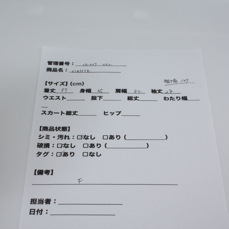 目立つシミや汚れ、ダメージは見受けられず、比較的良好な状態です。
