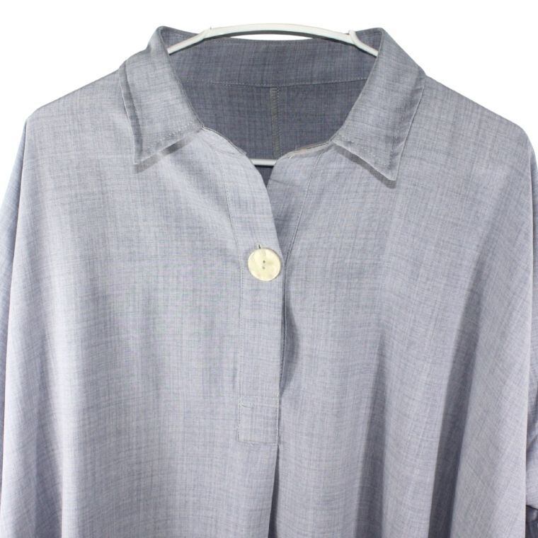 フロントはスキッパーカラー仕様で、首元をすっきりと見せつつ、程よい抜け感のあるスタイルに仕上がっています。