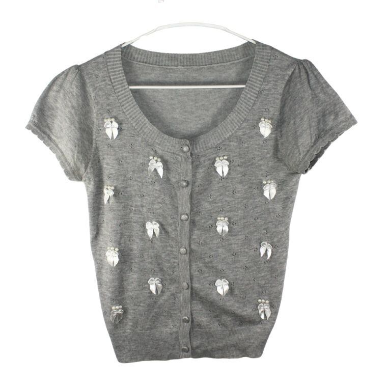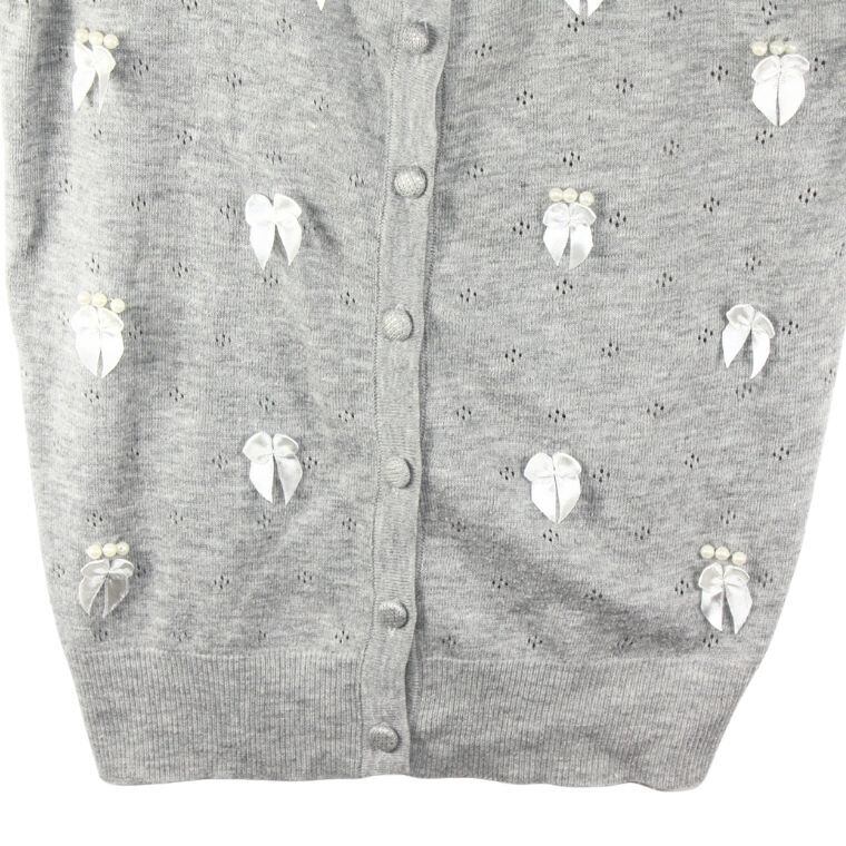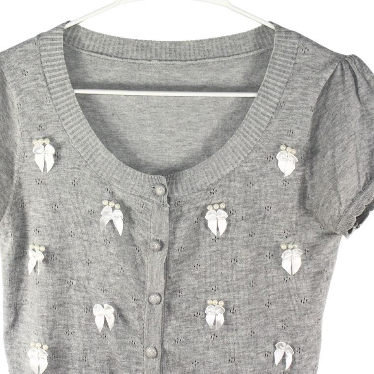 刺繍デザイン 半袖ニットカーディガン グレー レディース相当 XS〜S相当