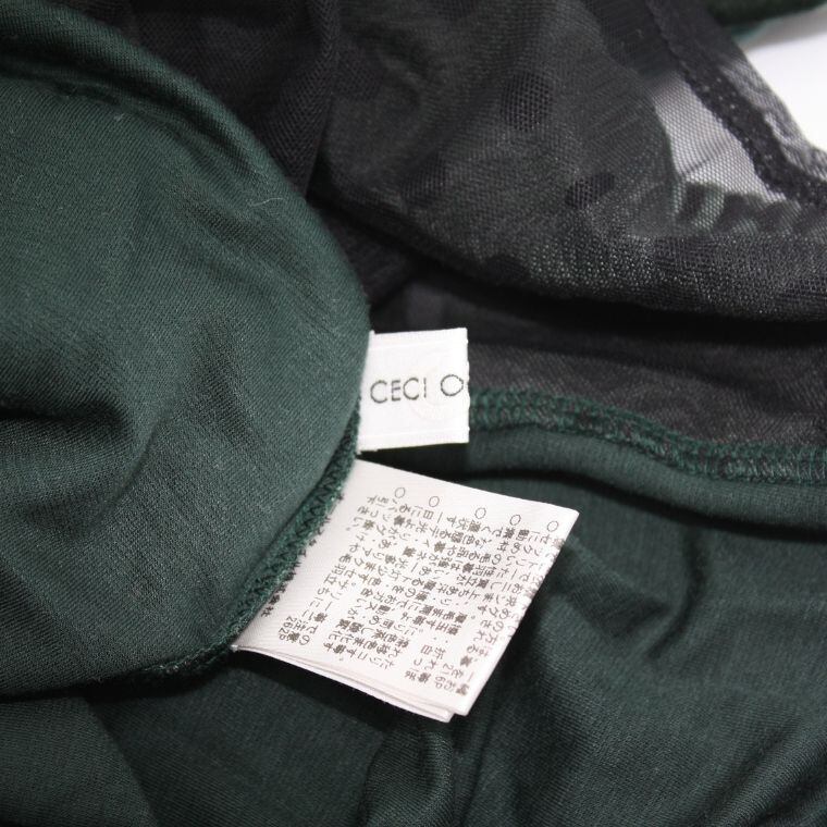 CECI OU CELA 日本製 デザインカットソー サイズ40 シアー切替 ハイネック 長袖
