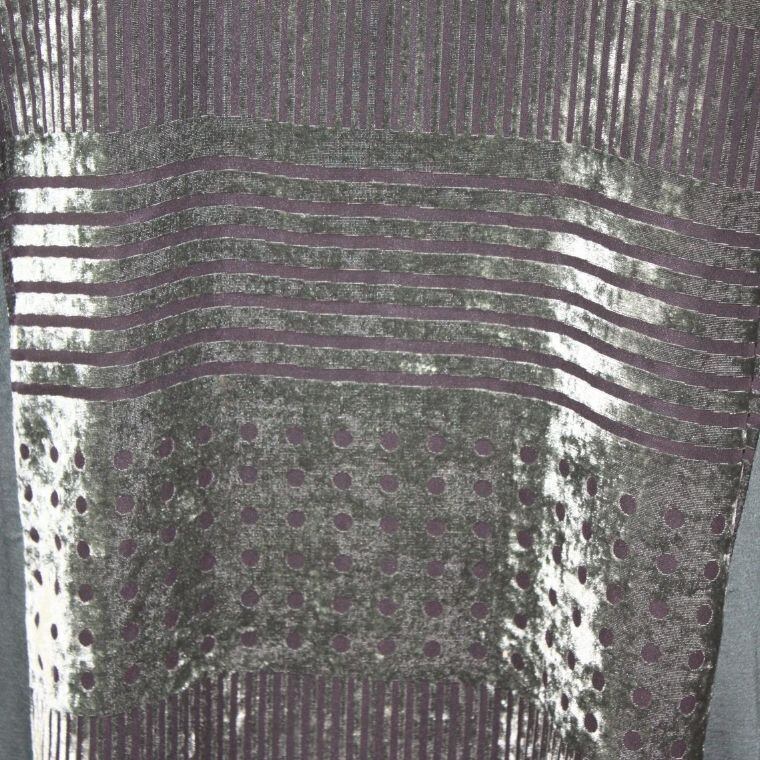 落ち着いたダークカラーをベースに、前身頃に表情のある素材感が施された一着。