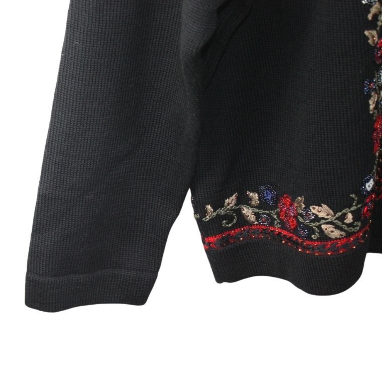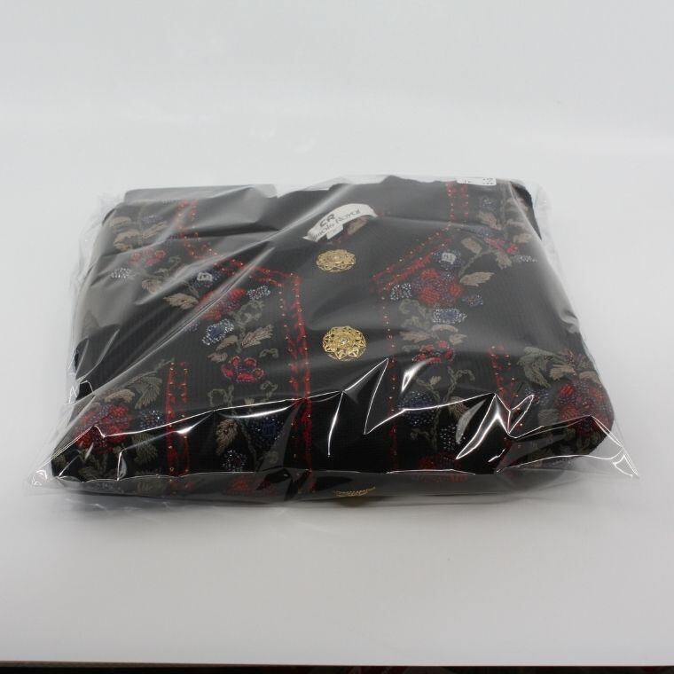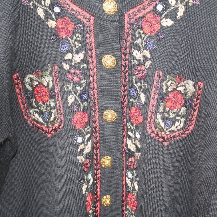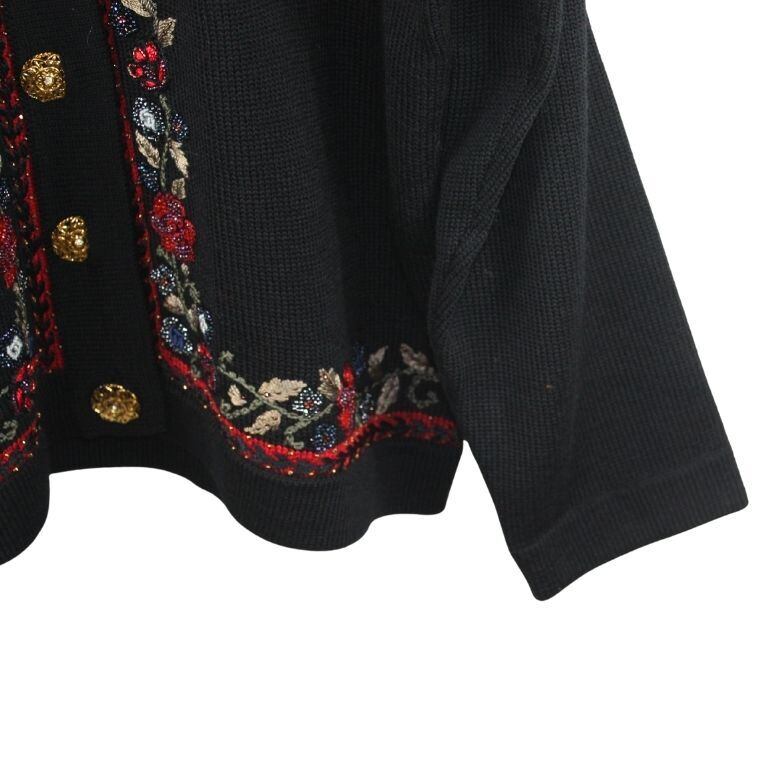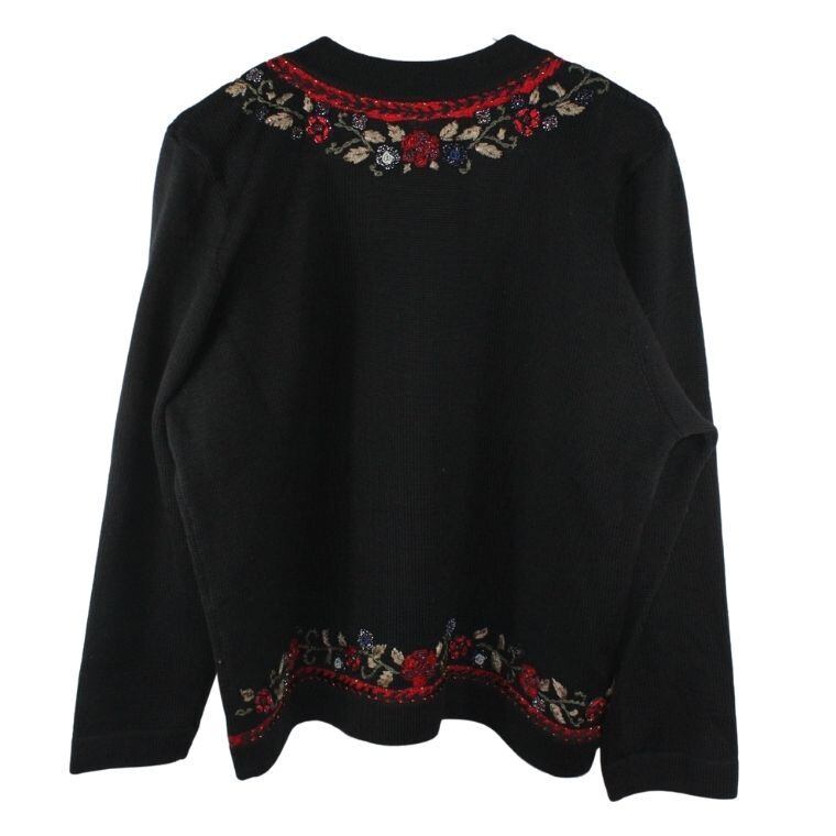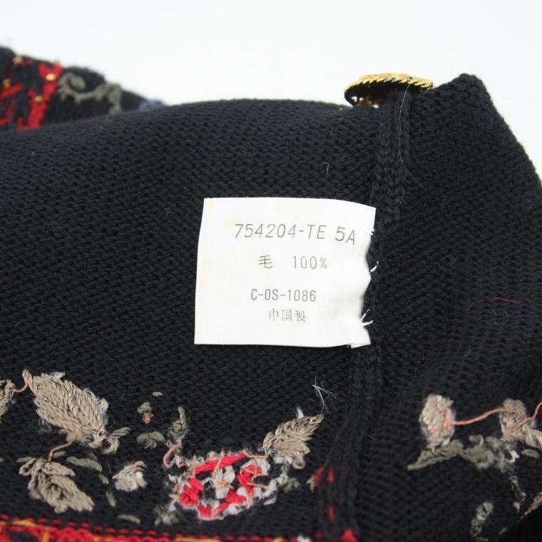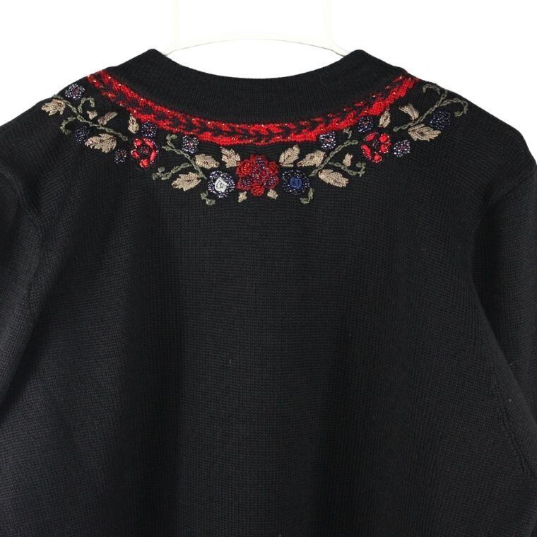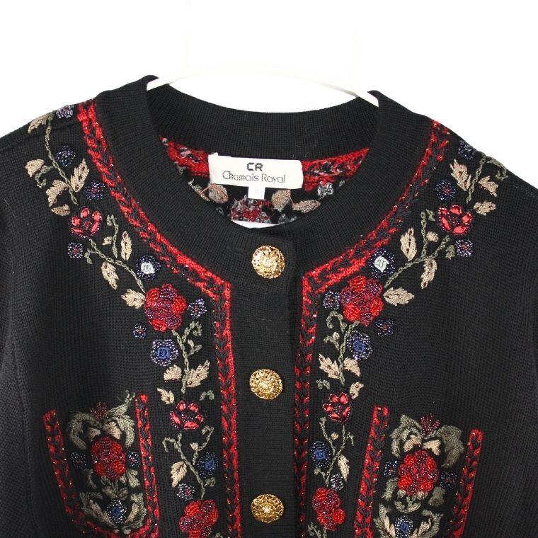 CR Chamois Royal 刺繍 ニットカーディガン 花柄 ウール100% ブラック レディース