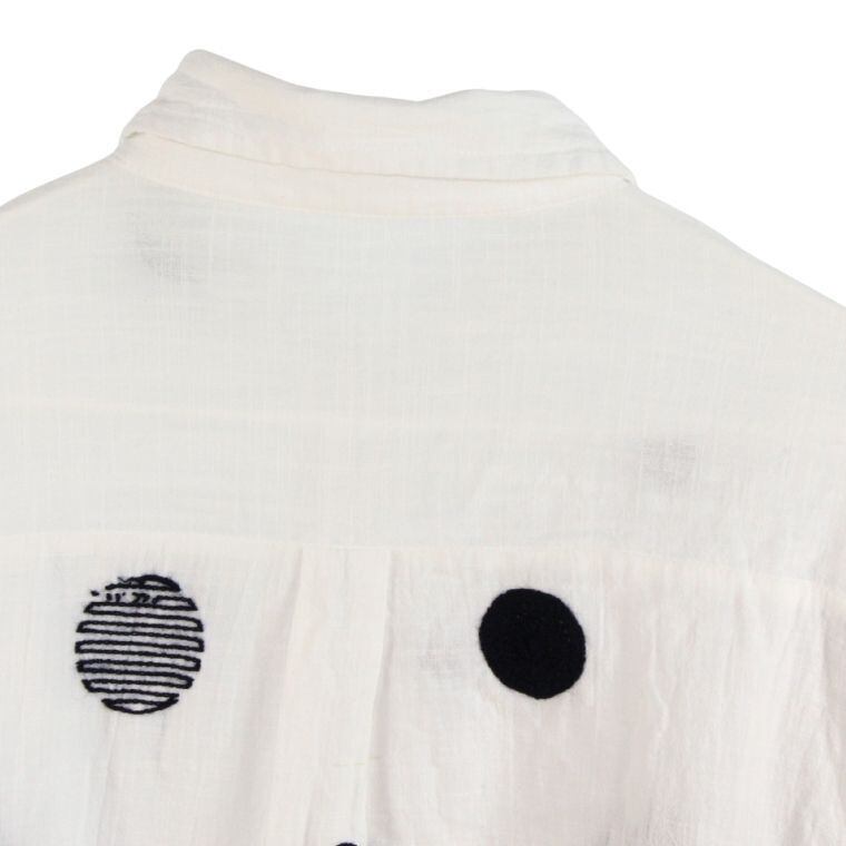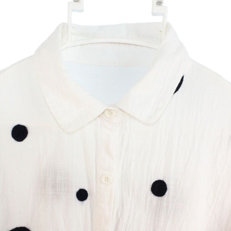 ブランド不明 ドット柄 シャツ ポケット2か所 綿100% 刺繍レーヨン 表記なし レディースM相当