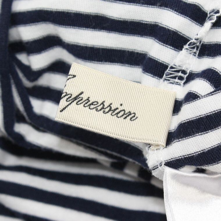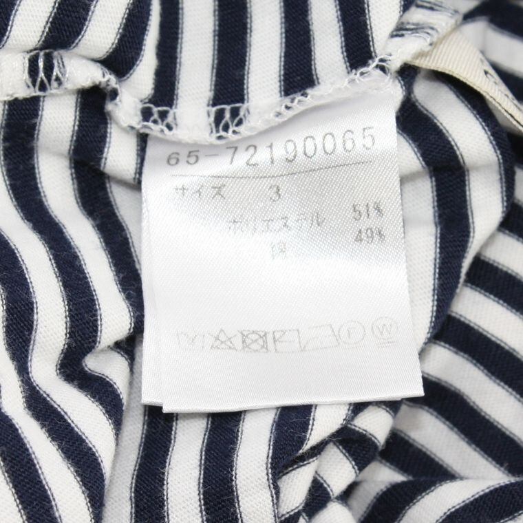 expression ボーダー 半袖 カットソー ネイビー×ホワイト サイズ3 綿混 シャーリングネック レディース