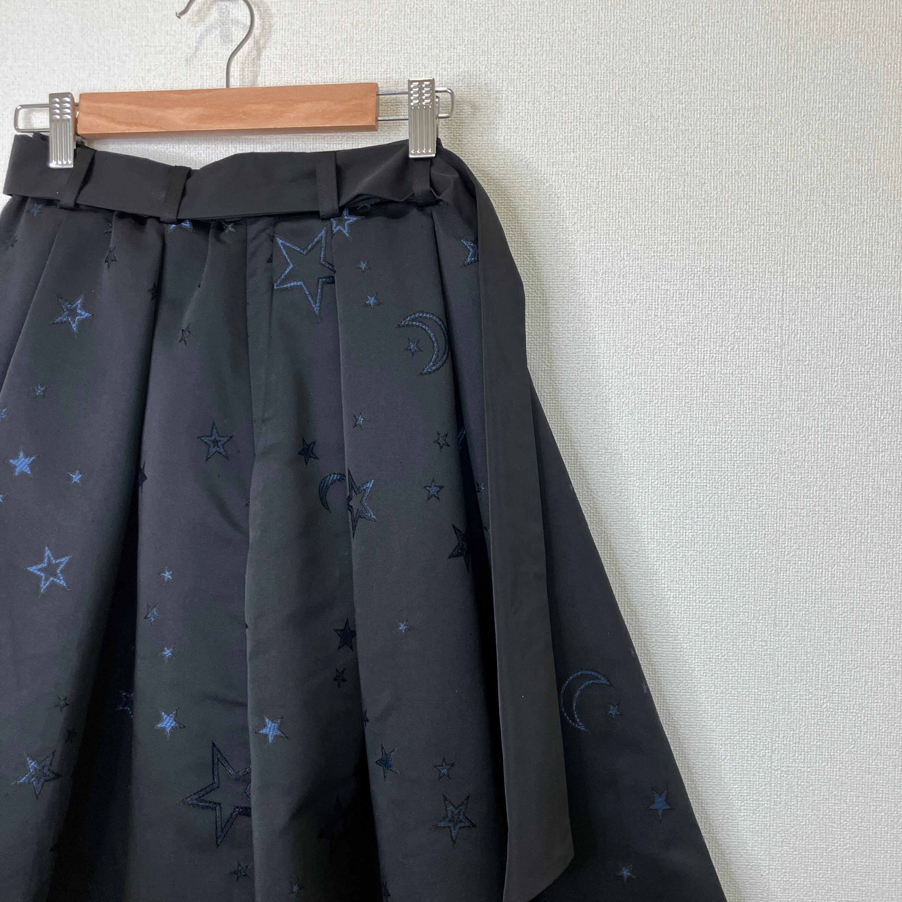 CHONO チョノ 星・月柄 刺繍 フレアスカート ブラック サイズ38 日本製