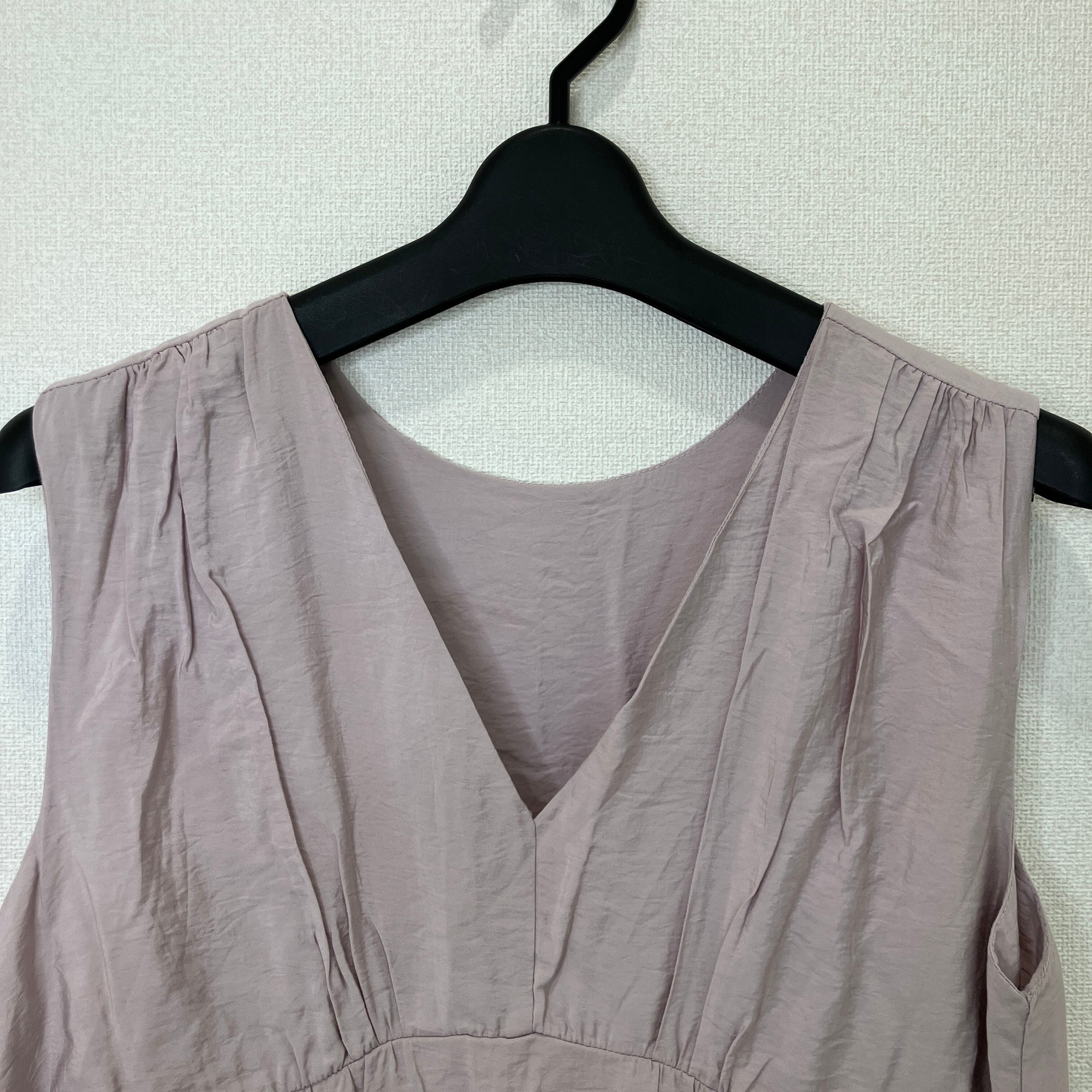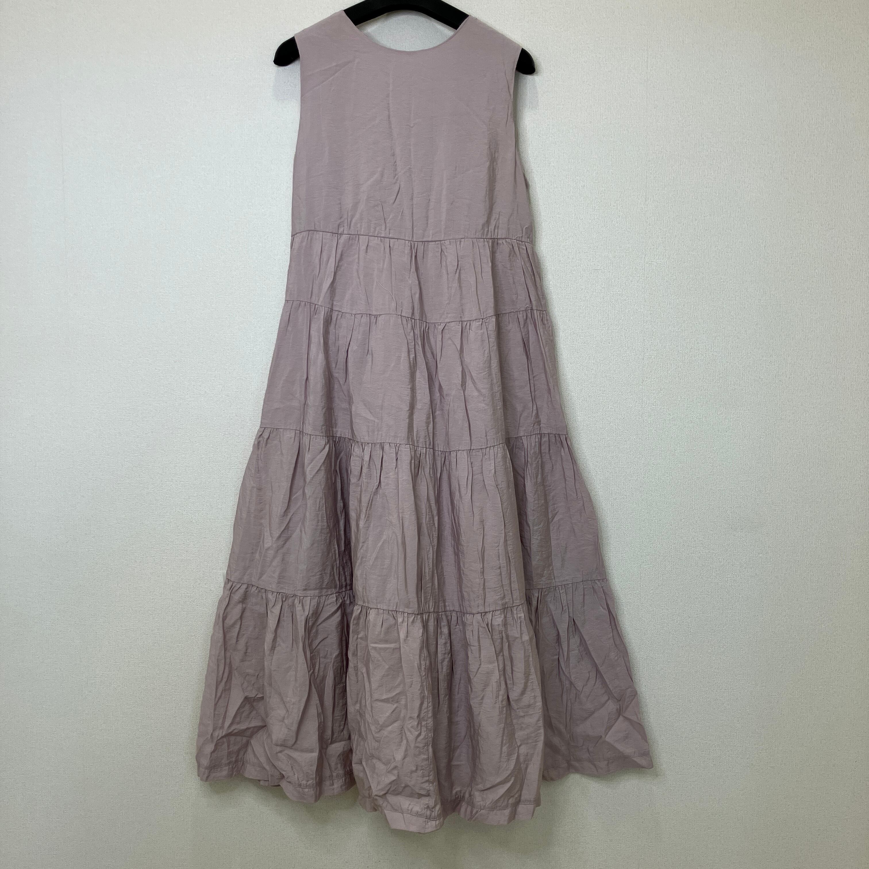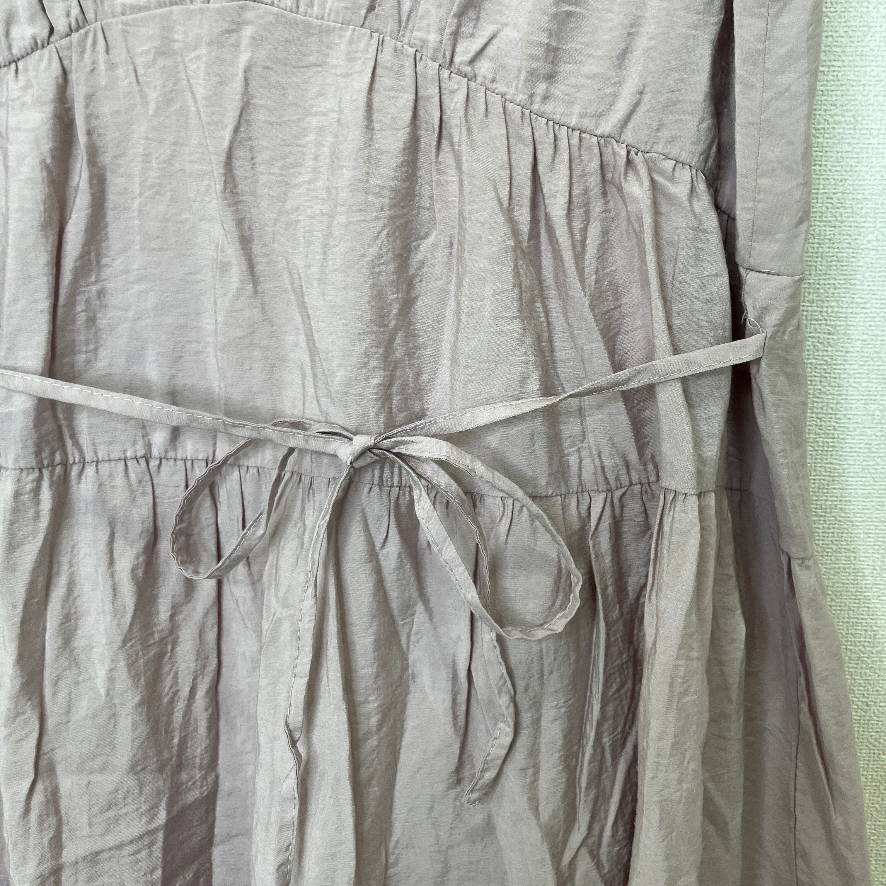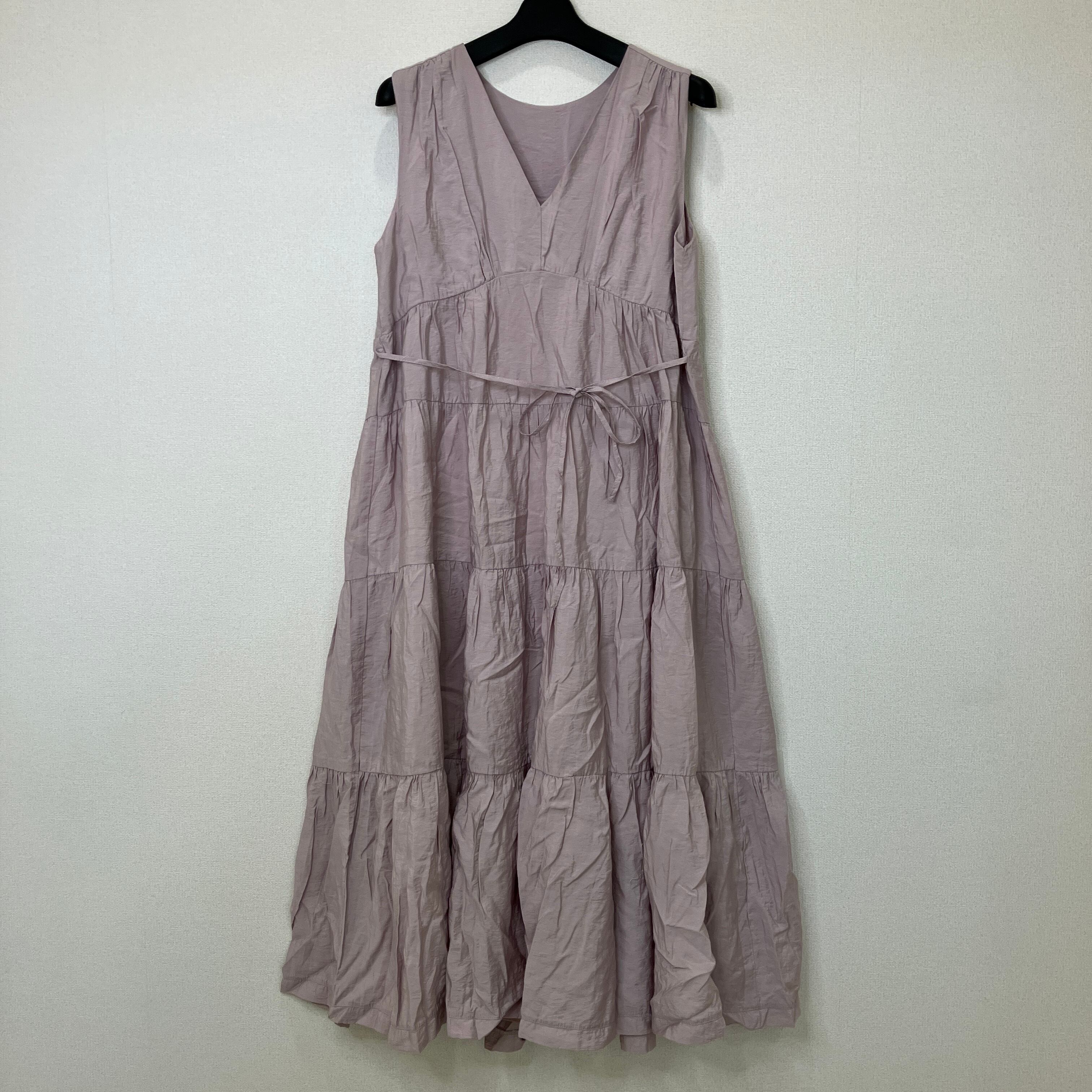 GRL(グレイル)前後Vネック ティアードワンピース ウエストリボン付き モカピンク