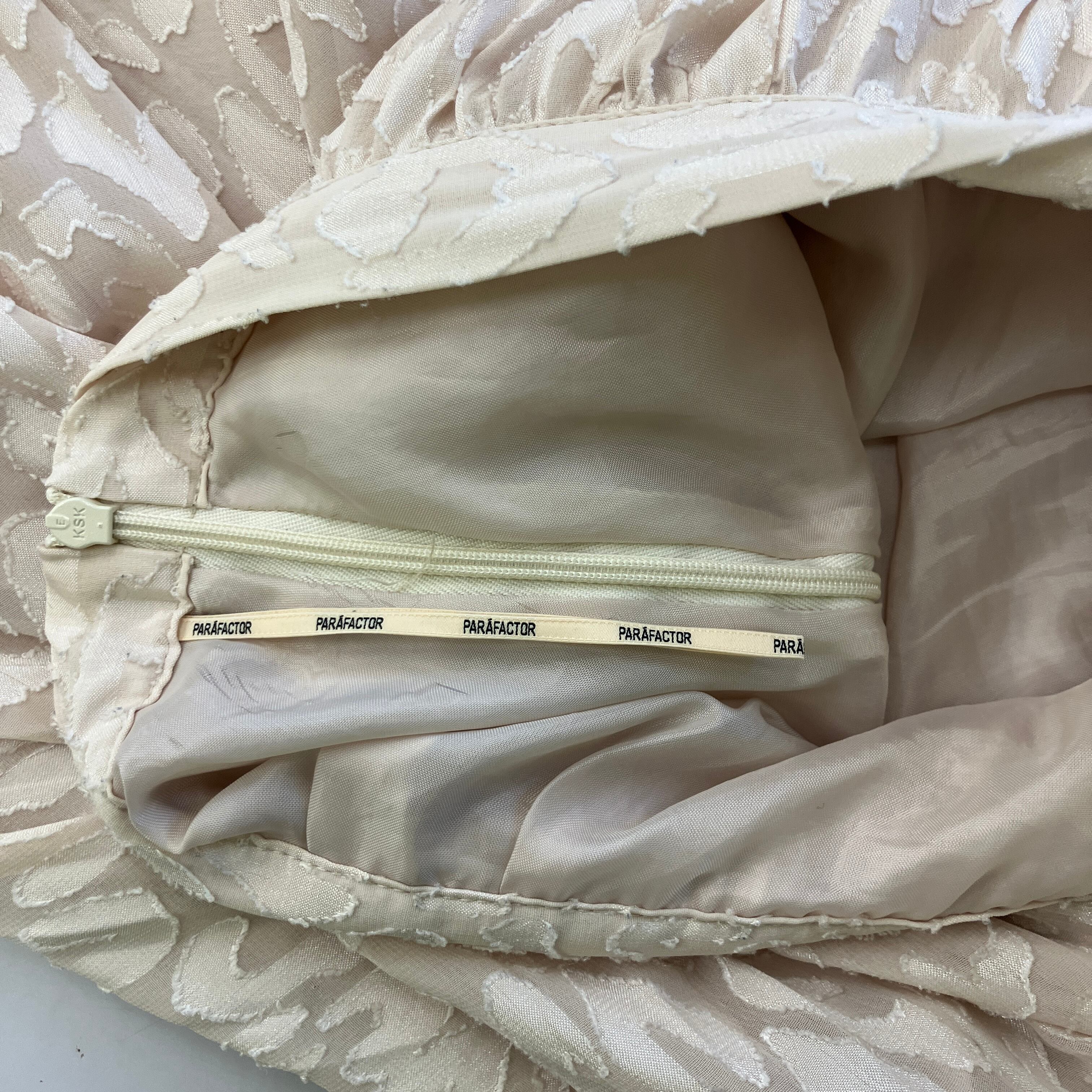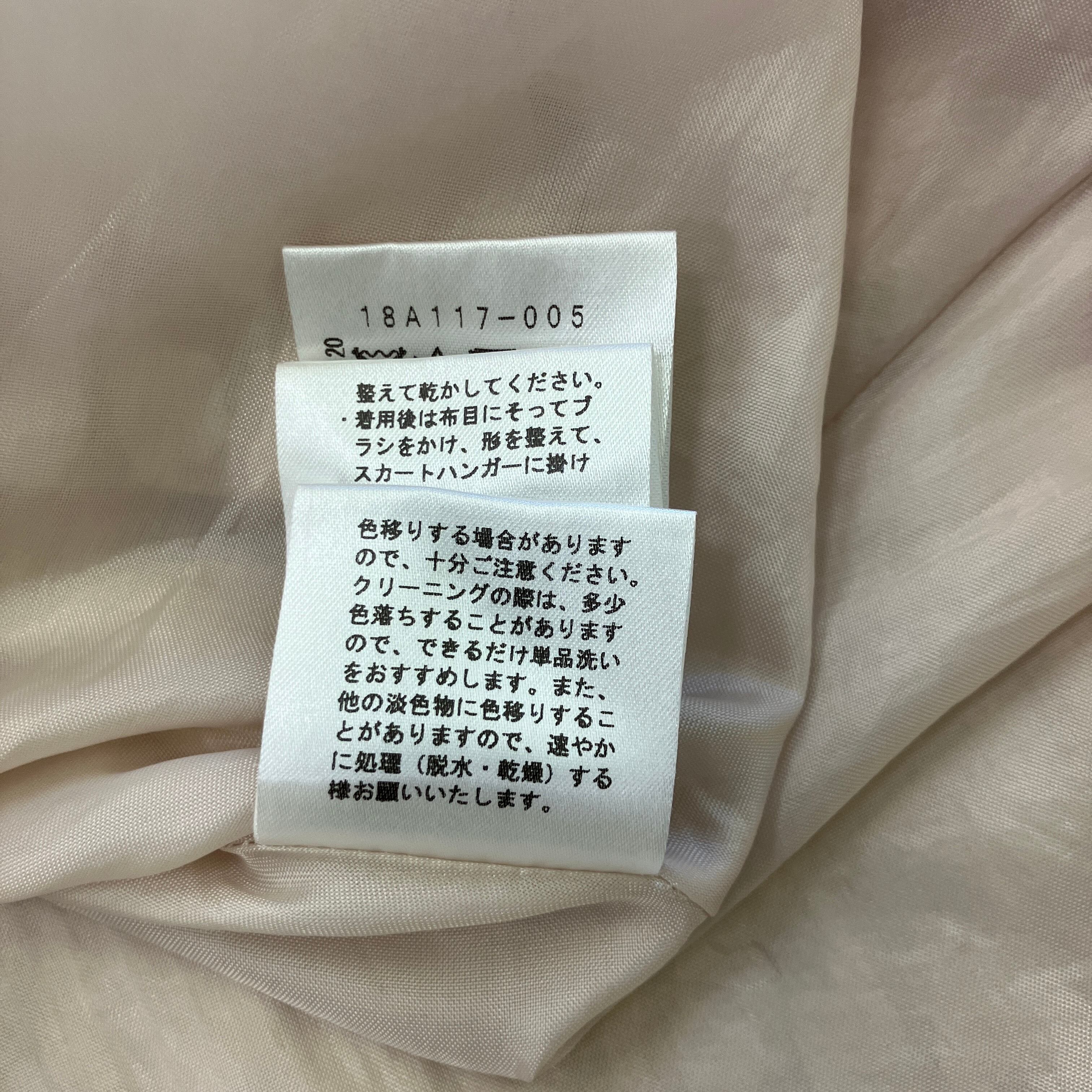上品な光沢感と柔らかな素材感が特徴で、バックファスナー仕様によりウエスト周りもスマートにまとまります。
