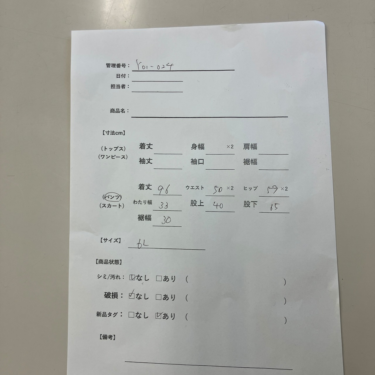 管理番号:Y01-024 #てまいらずアパレル商品一覧