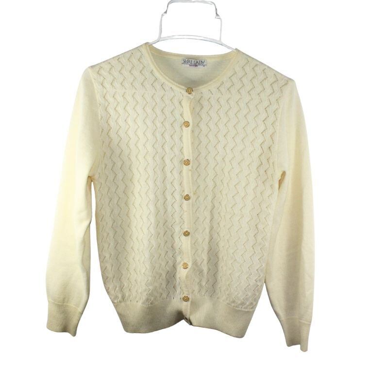 SURE LADY RENOWN カーディガン アイボリー 透かし編み Mサイズ レディース