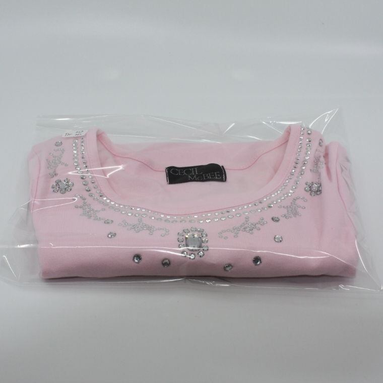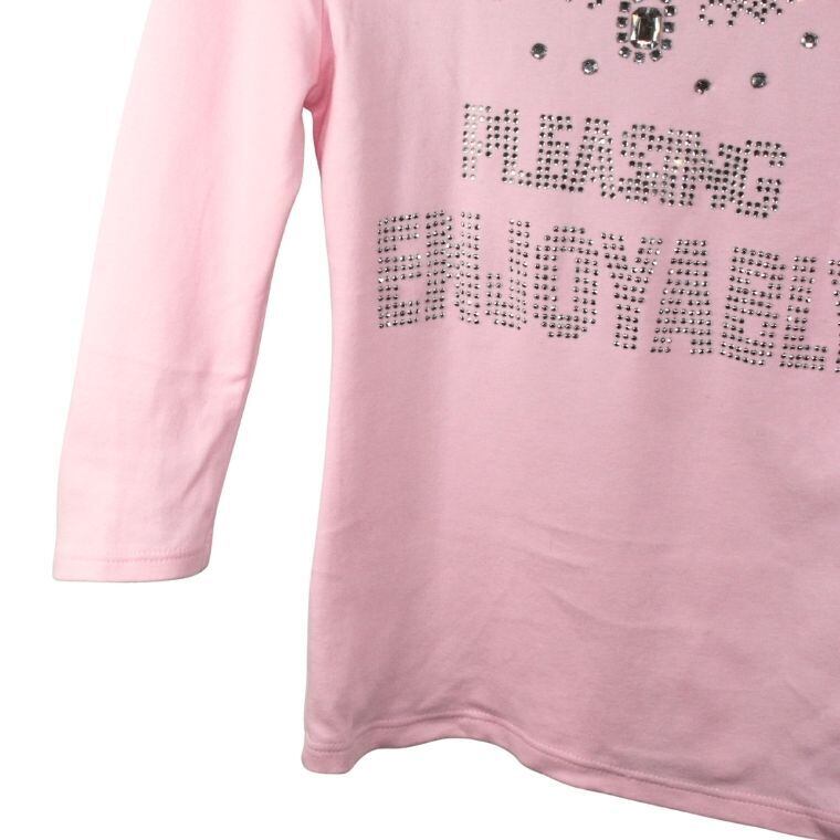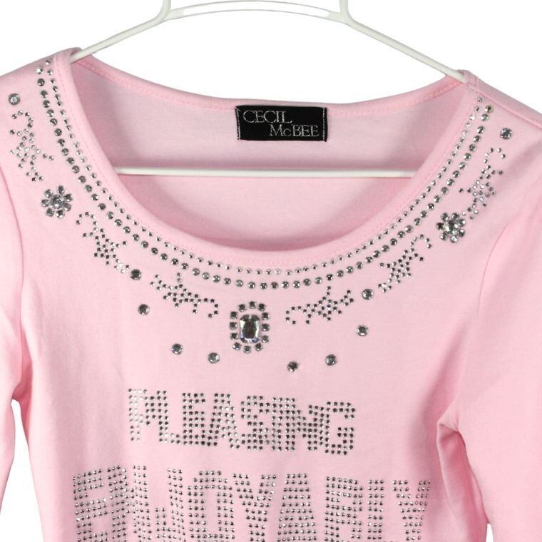 CECIL McBEE ラインストーン 七分袖カットソー ピンク M相当 ロゴ装飾 綿100%
