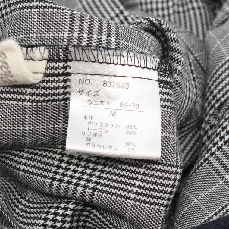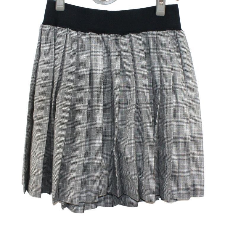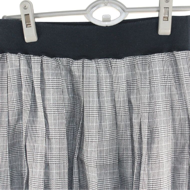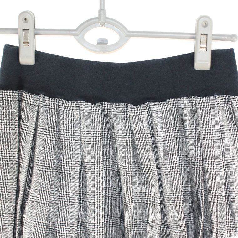 グレンチェック プリーツスカート M ウエストゴム ブラック×グレー 膝上丈 レディース
