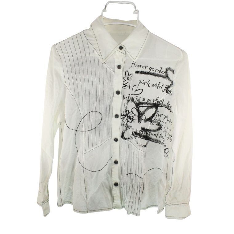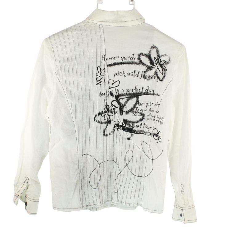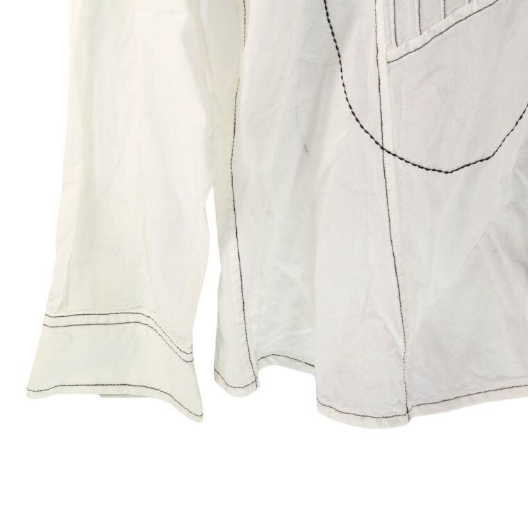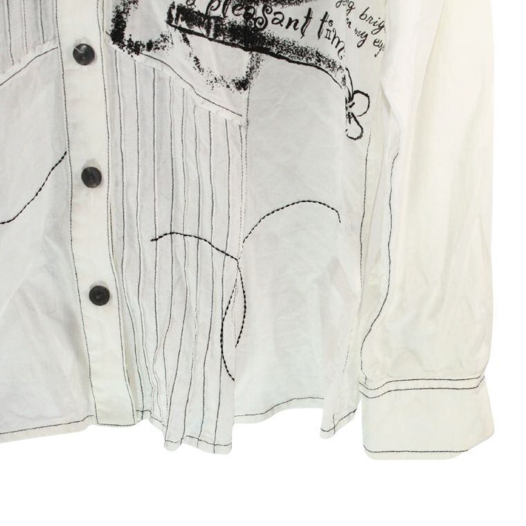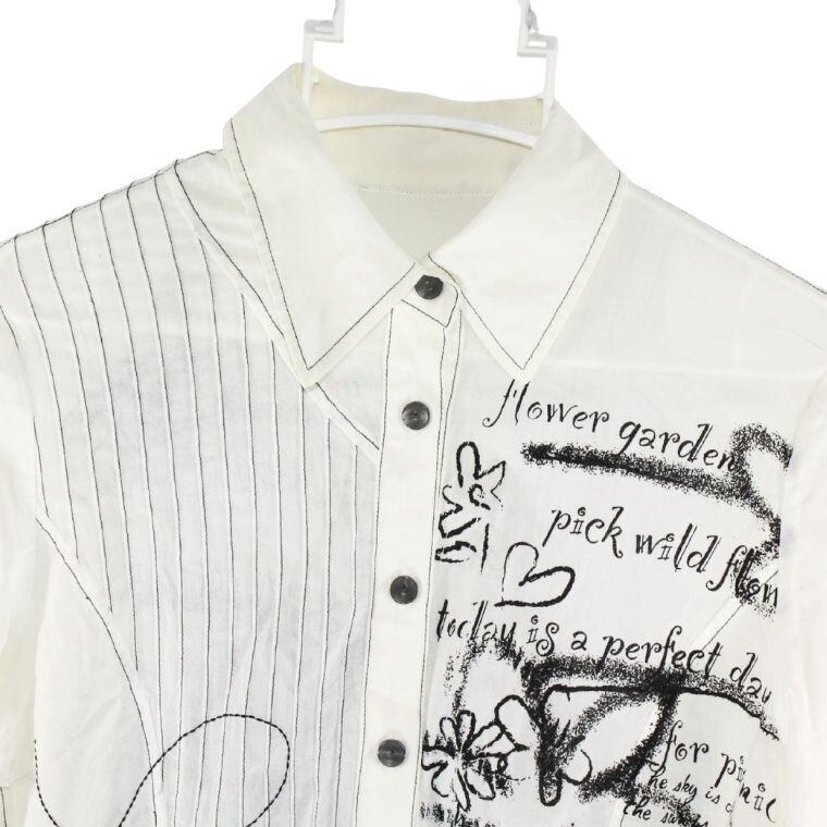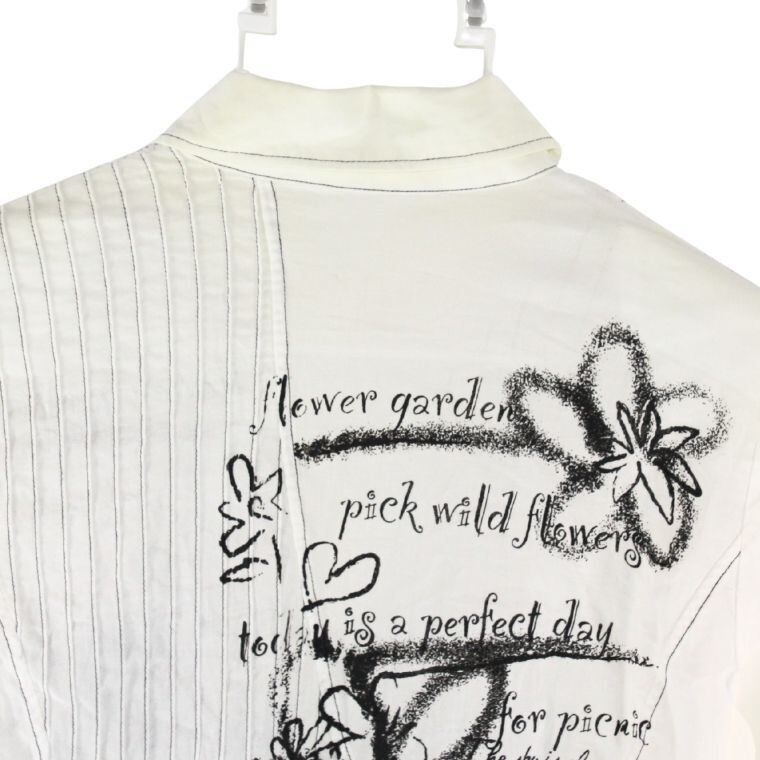 透け感 花柄刺繍 デザインシャツ 長袖 ホワイト L レディース ナチュラル