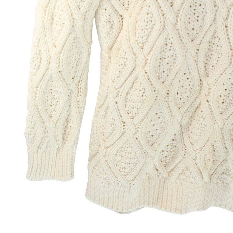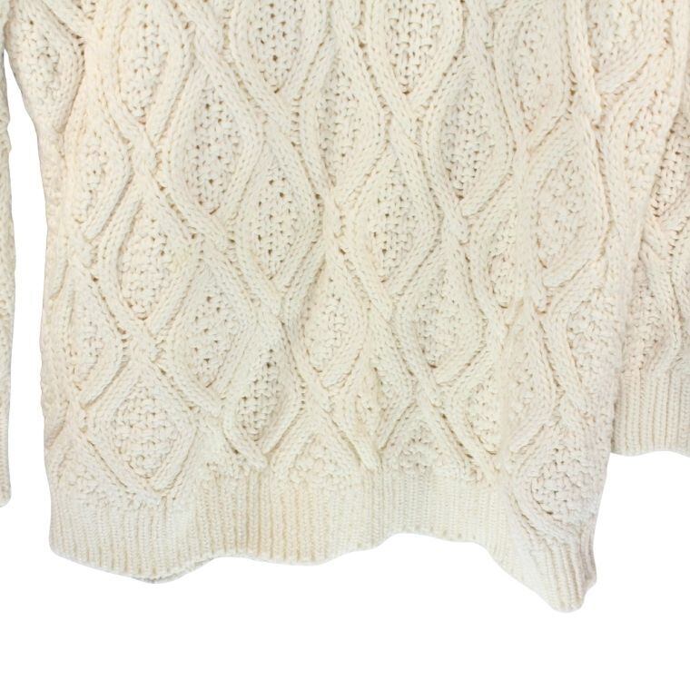 立体感のあるケーブル編みデザインが特徴で、シンプルながらも存在感のある一着です。