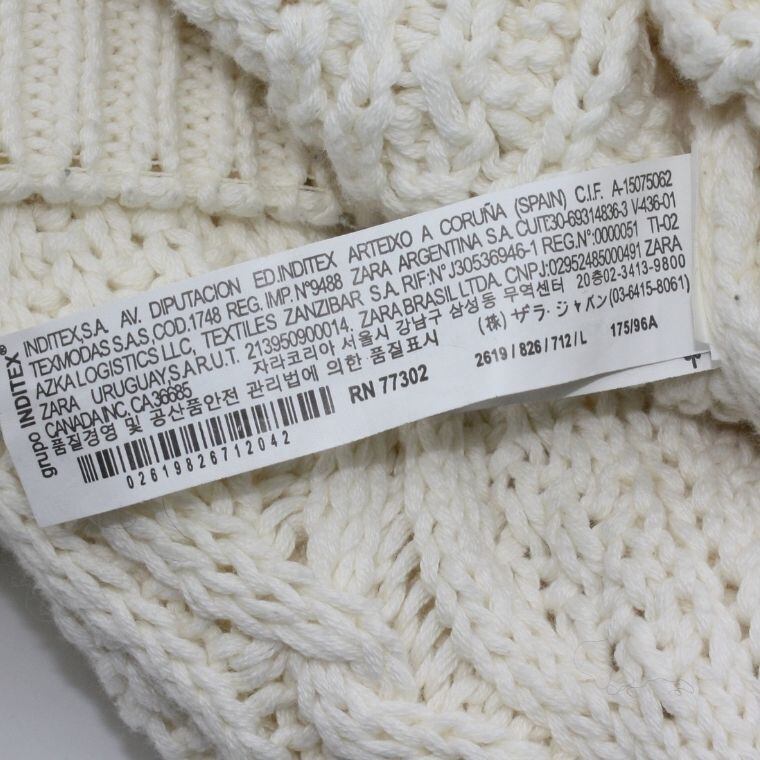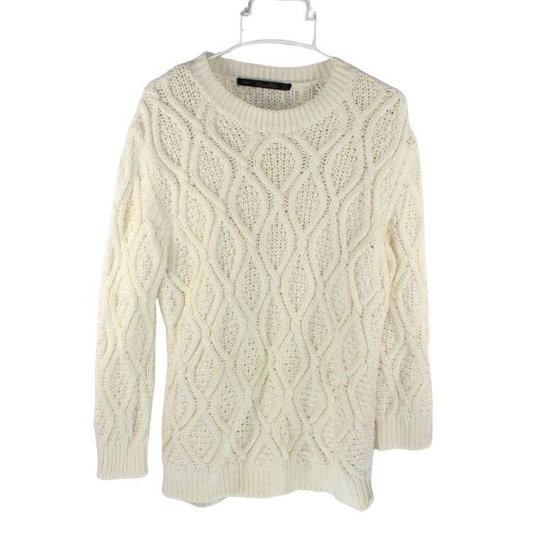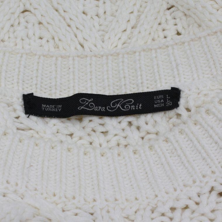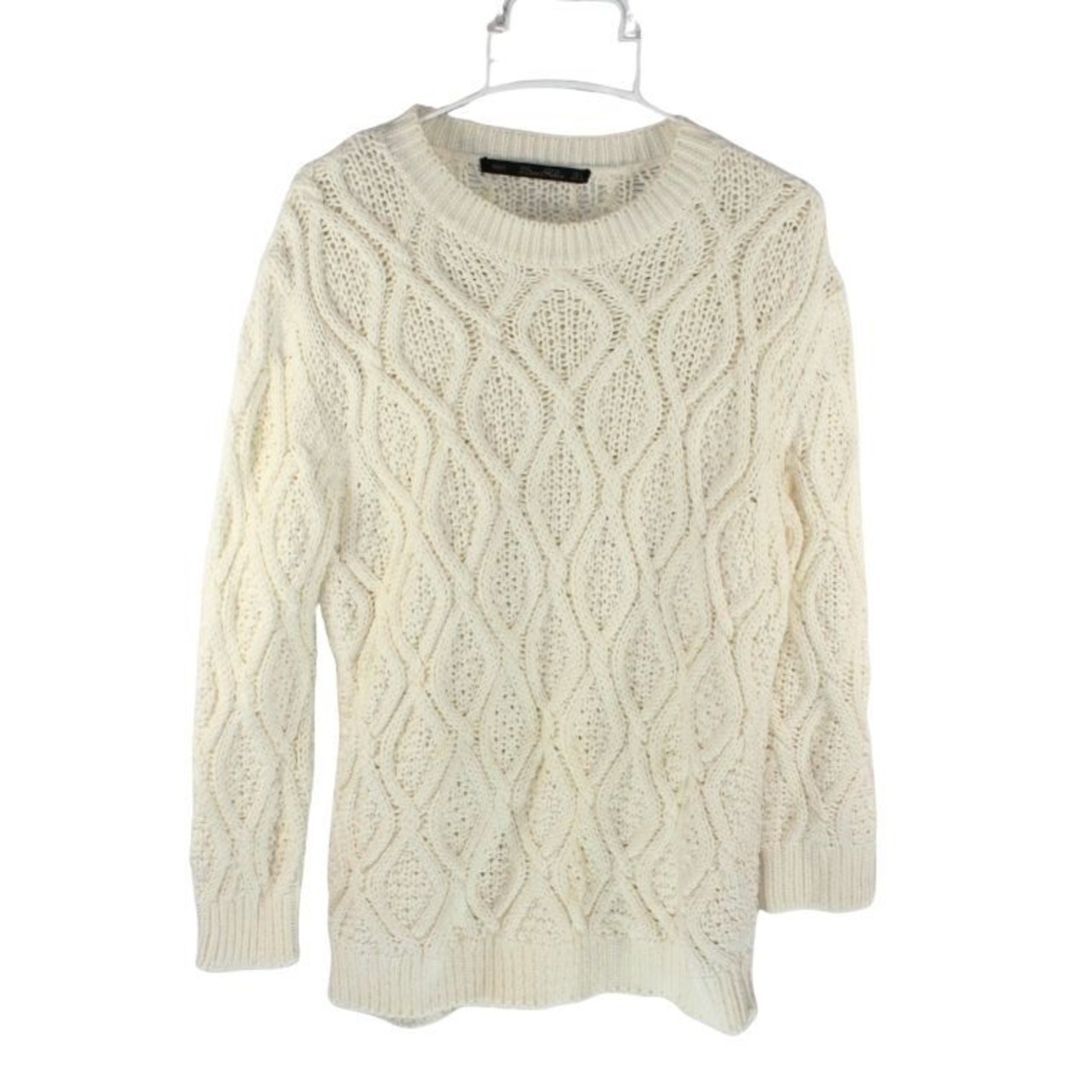 ZARA KNIT ケーブル編み ニット セーター ホワイト クルーネック L相当