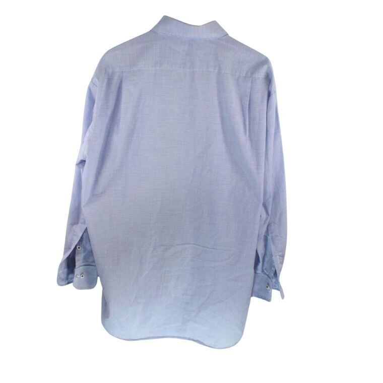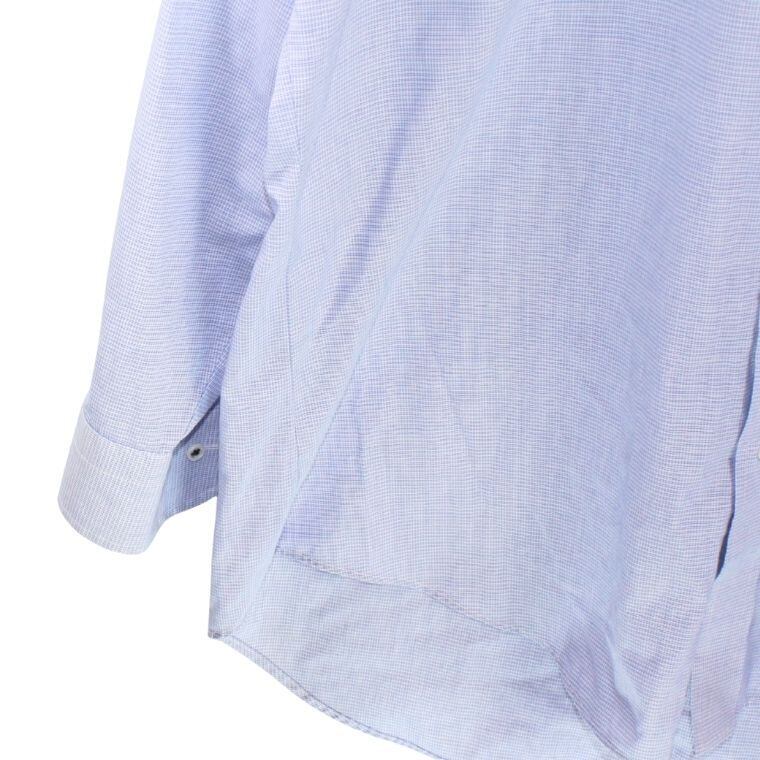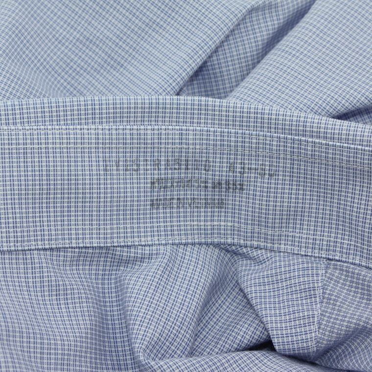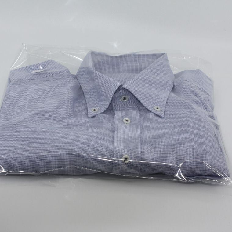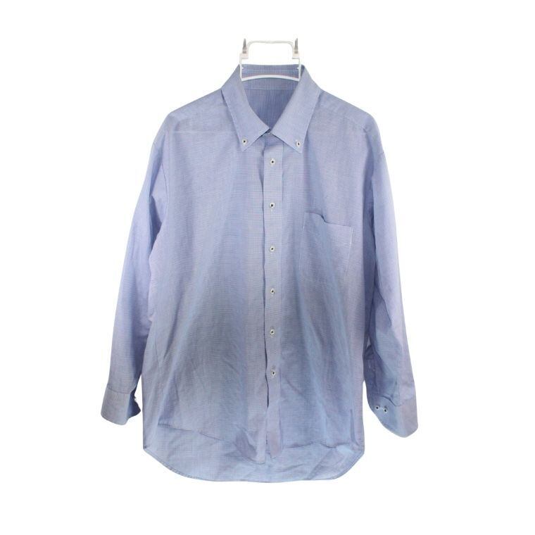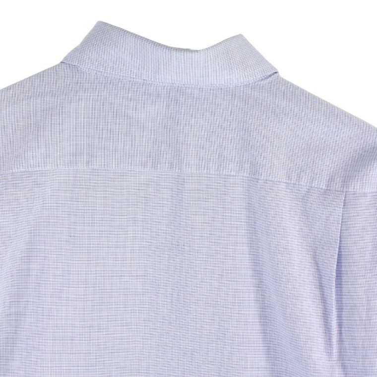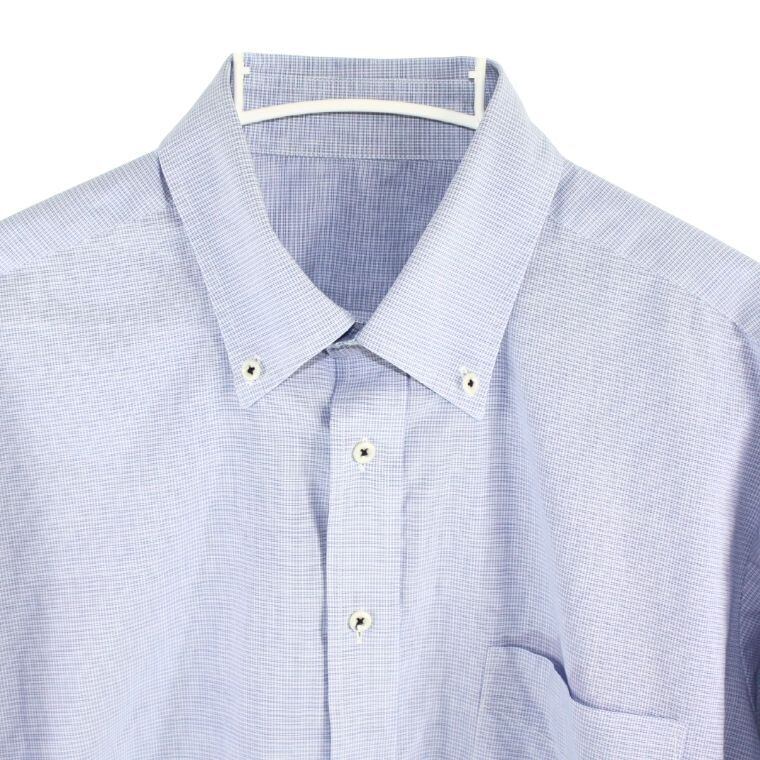 淡いブルーを基調とした細かなチェック柄が特徴で、清潔感があり、オン・オフ問わず着用しやすい一着です。程よくハリのある生地感で、きちんと感がありながらも軽やかな着心地となっています。ボタンダウン仕様のため襟元が崩れにくく、ジャケットやカーディガンのインナーとしても相性が良いデザインです。
